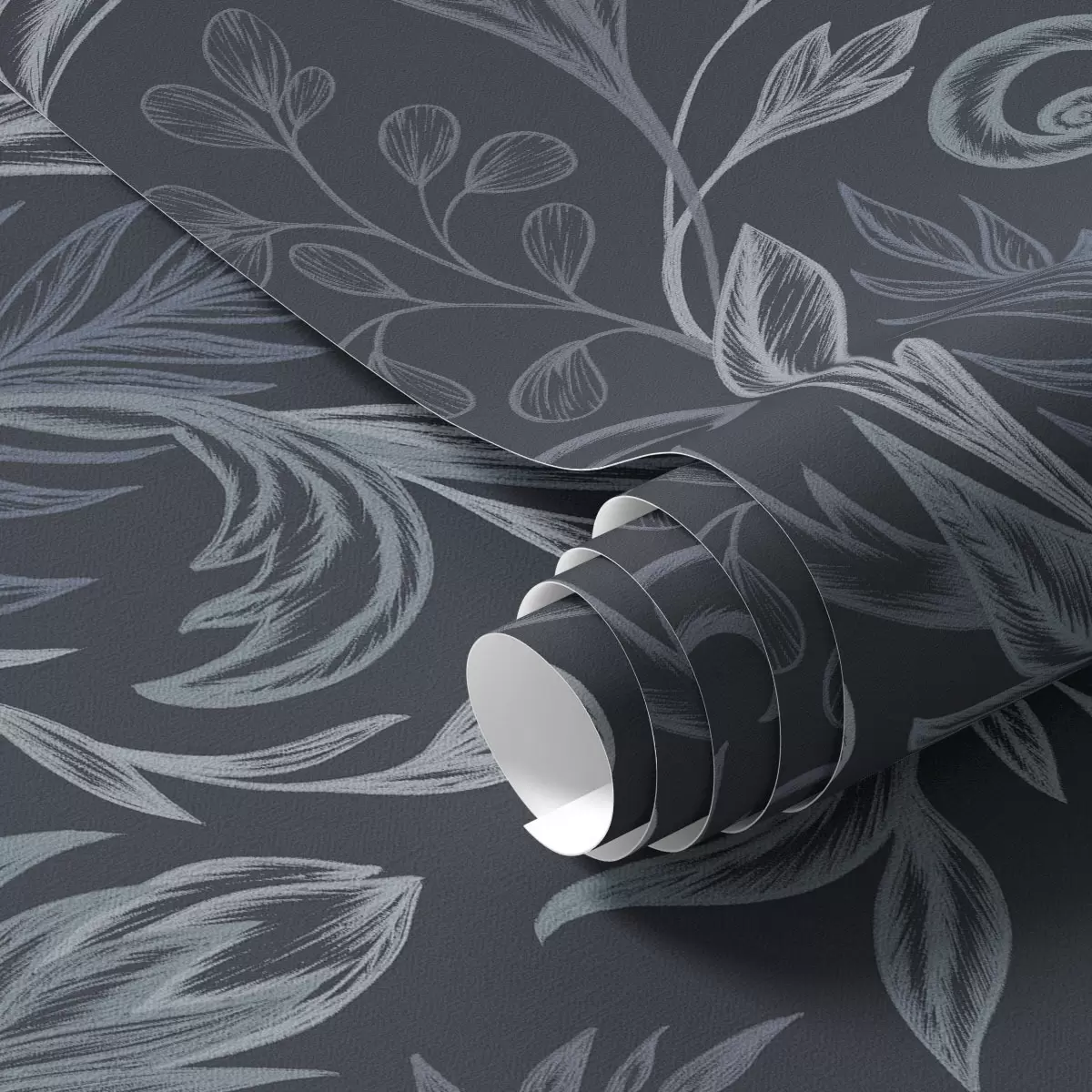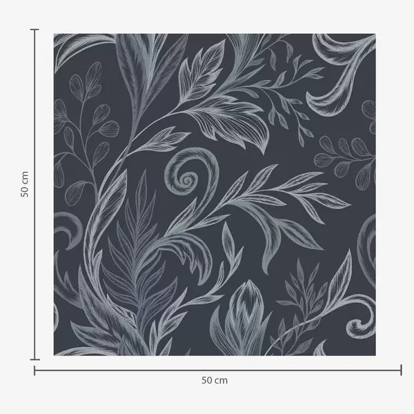 Tapeta Temno indigo zavite liste z ročno narisanim senčenjem Št. a00935