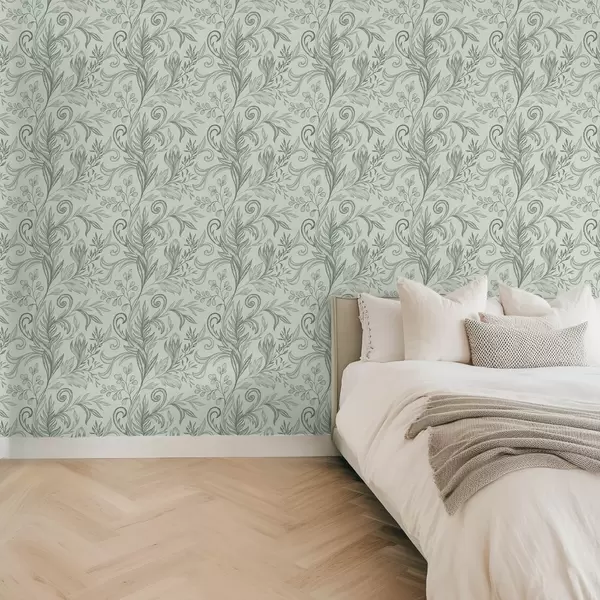 Tapeta Mehki listi mete v nežnih sivo-zelenih linijah Št. a00935v3