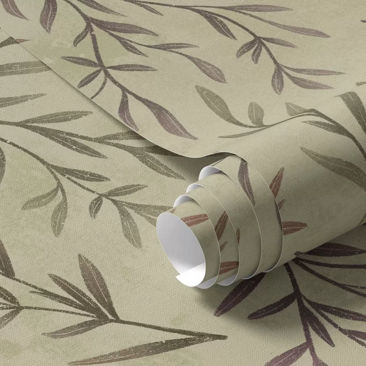 Tapeta Lilac in zelene veje z listi na topli podlagi Št. a00936v4