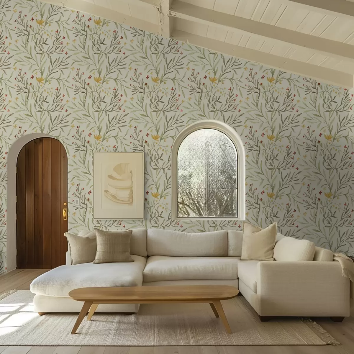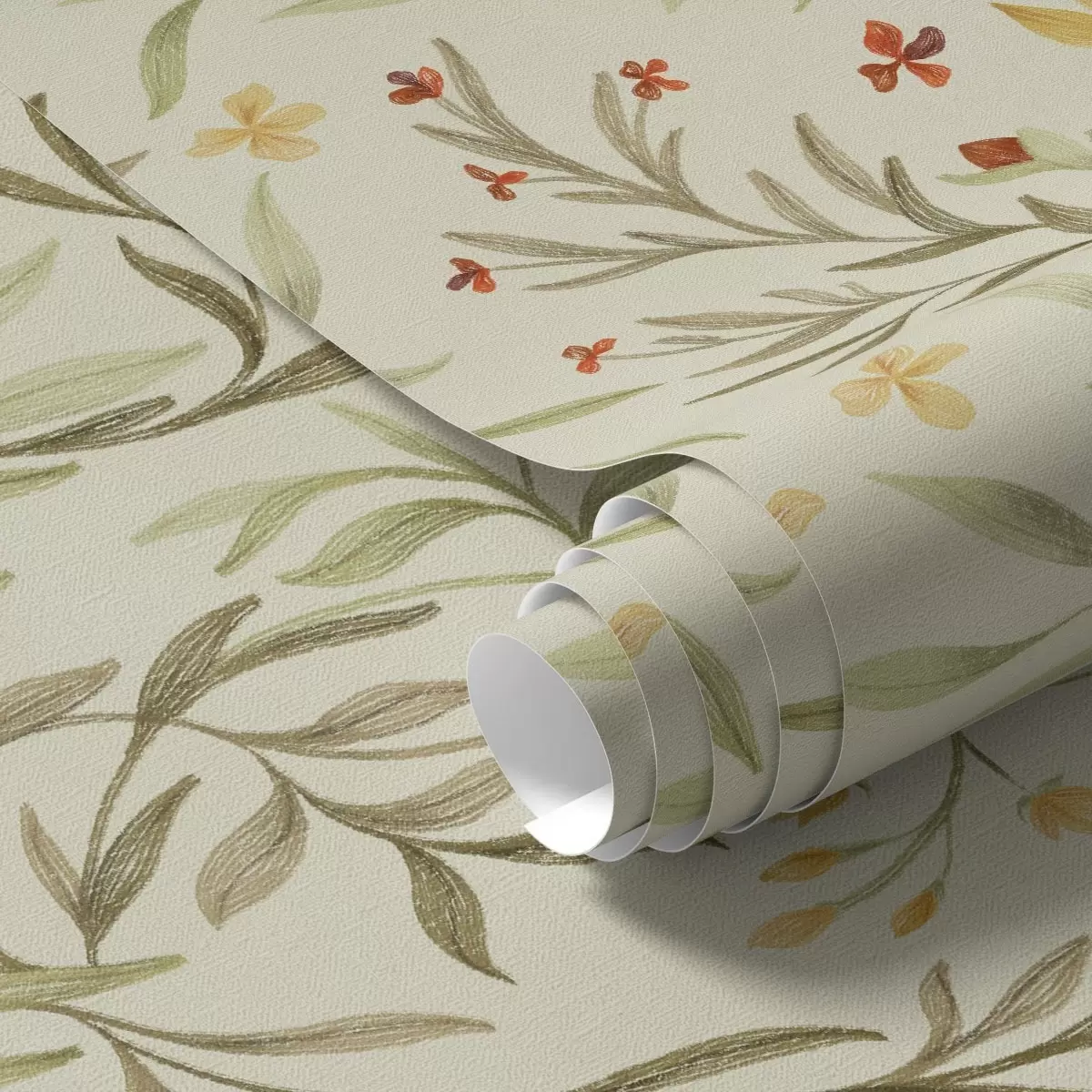Tapeta Rumene in rdeče cvetlice na svetlo zelenkastem ozadju Št. a00937