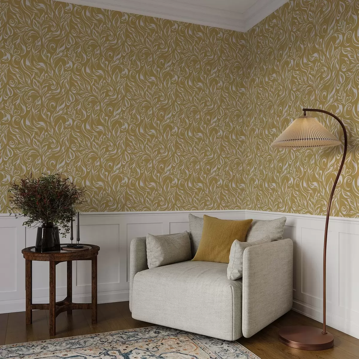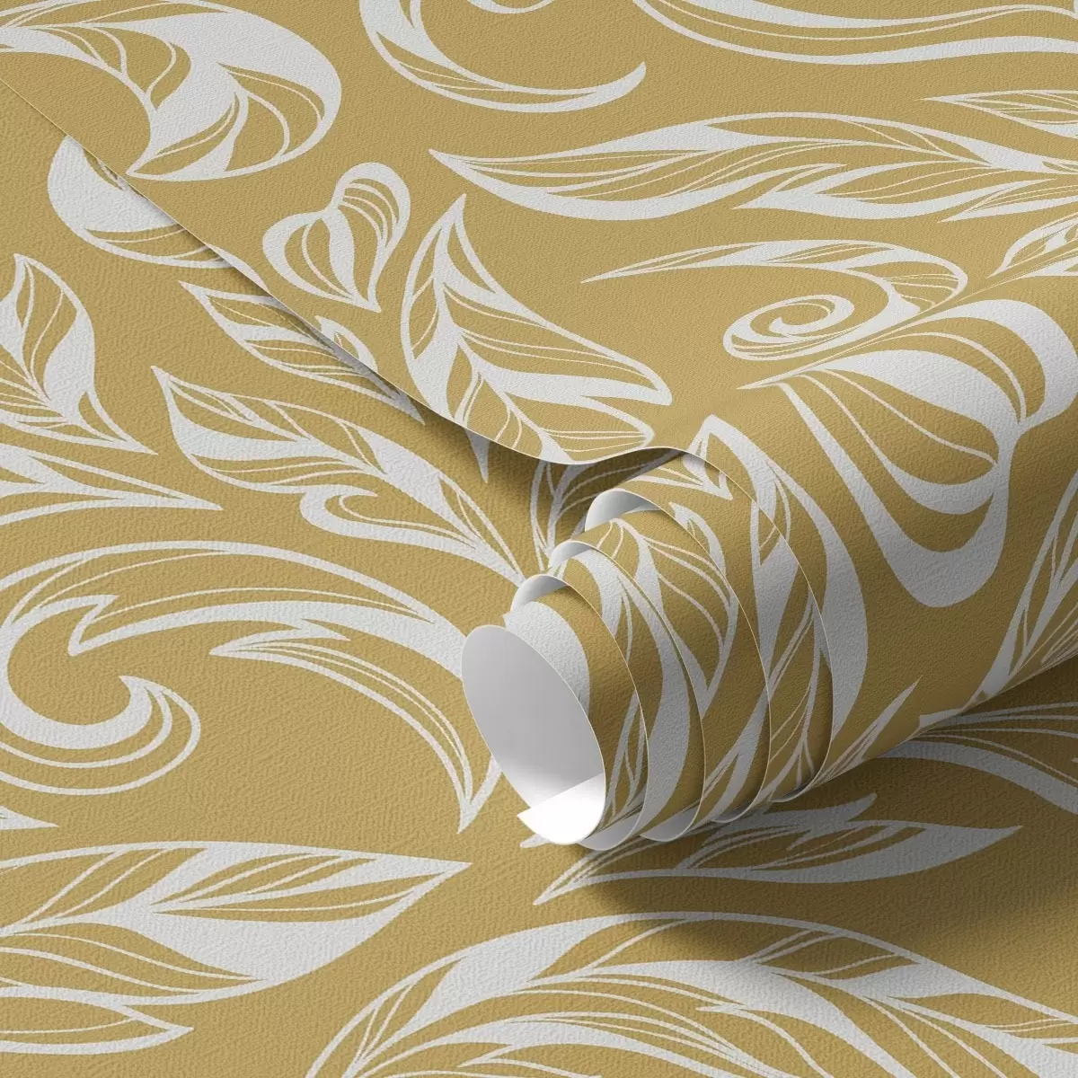 Tapeta Kremasto bel listnati ornament na topli okrovi podlagi Št. a00940v1