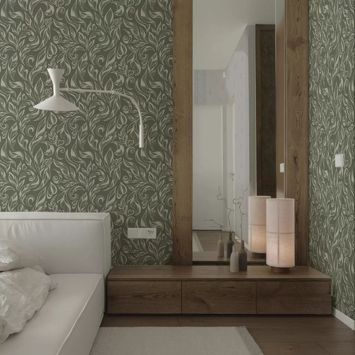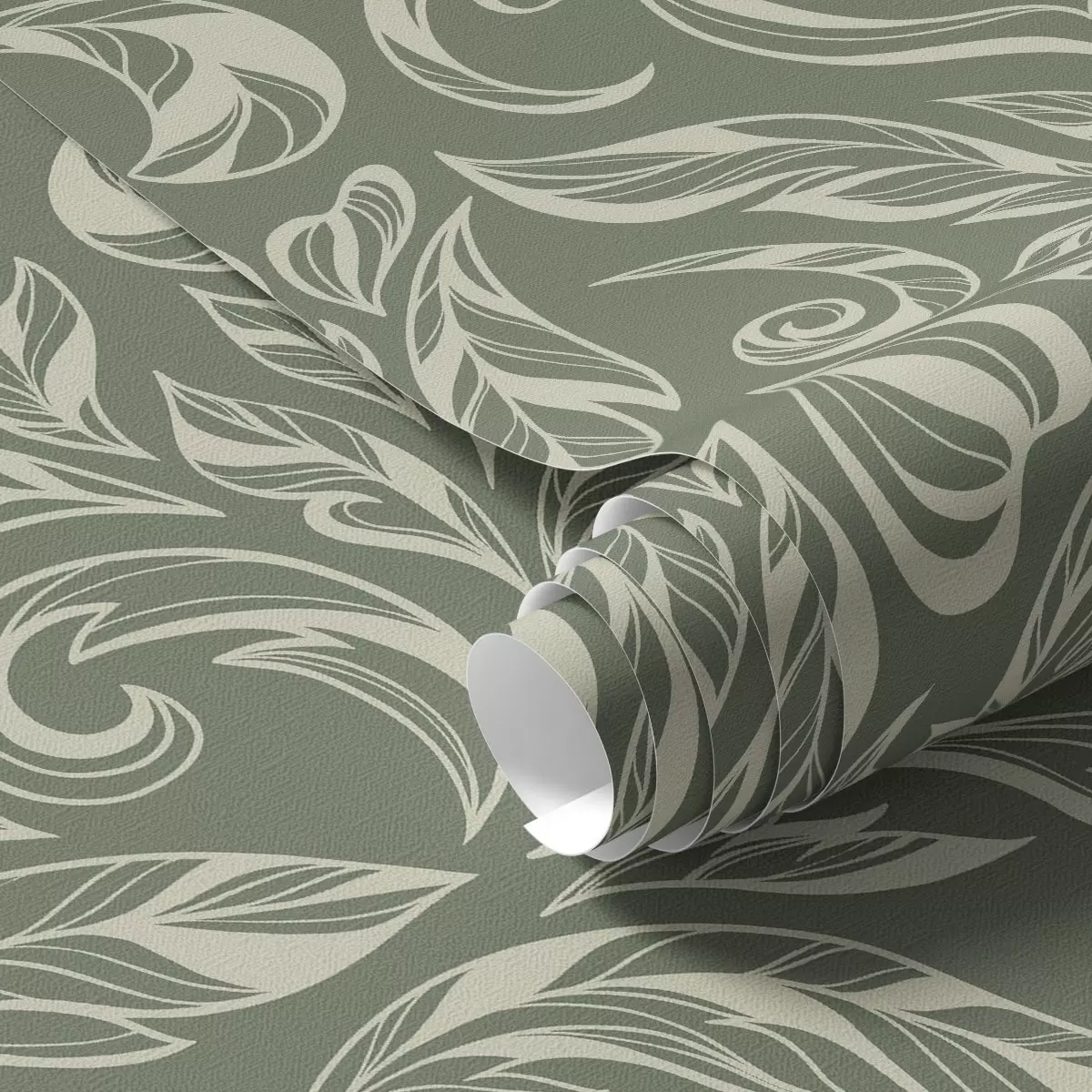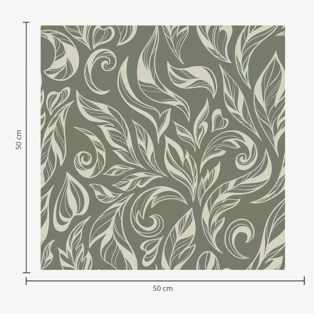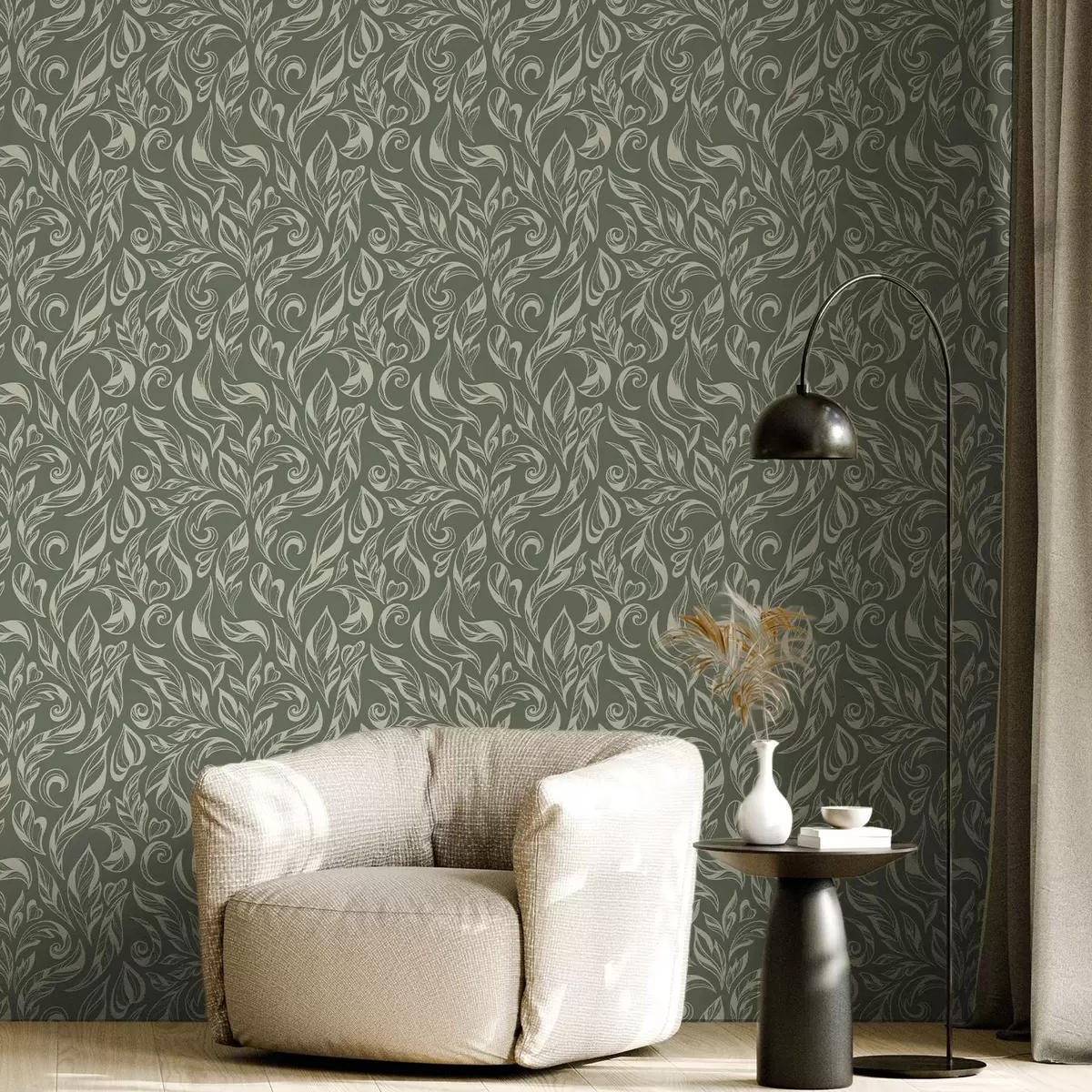 Tapeta Kremast listnat ornament na zelenkasto-sivem ozadju Št. a00940v2
