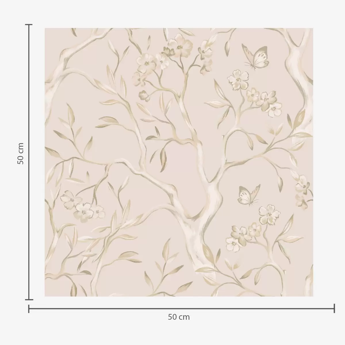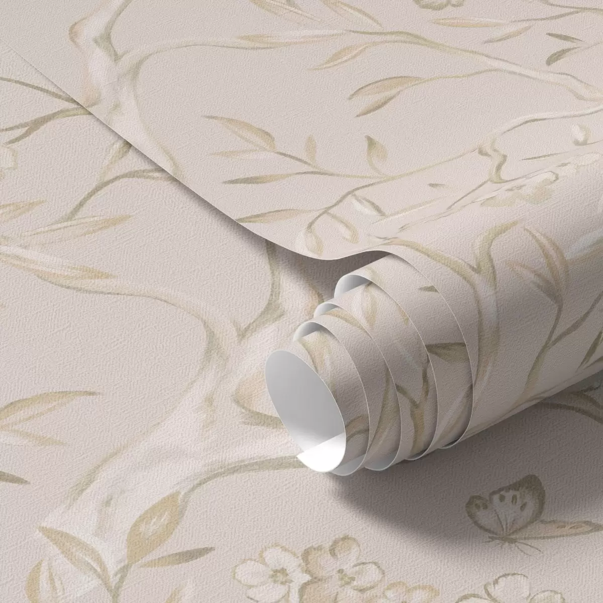 Tapeta Bež cvetoče veje z metulji na mehkem ozadju Št. a00951v2