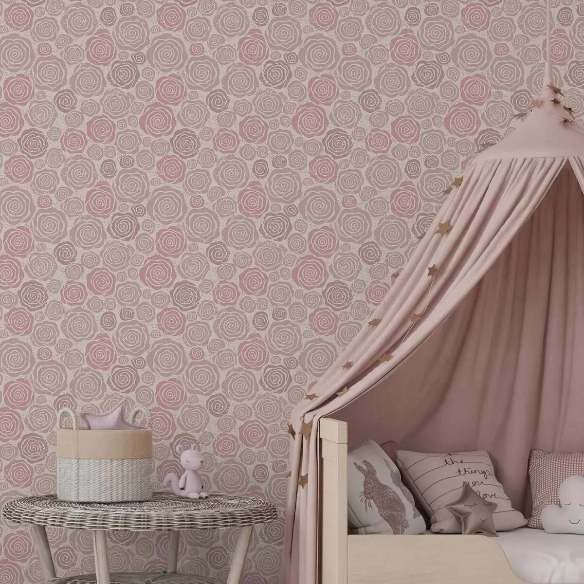 Tapeta Spiralne rožnate vrtnice in brizgi na svetlem ozadju Št. a00955
