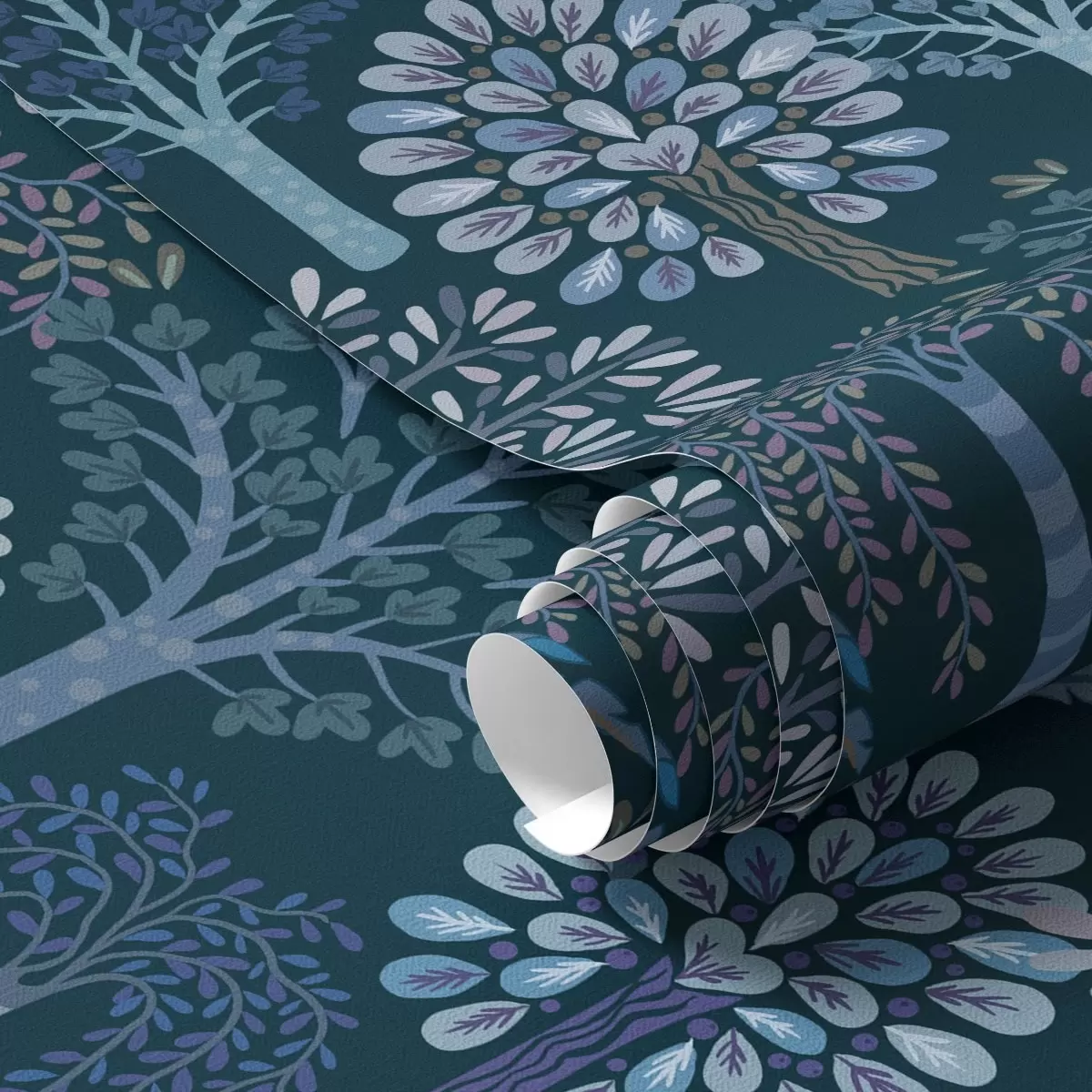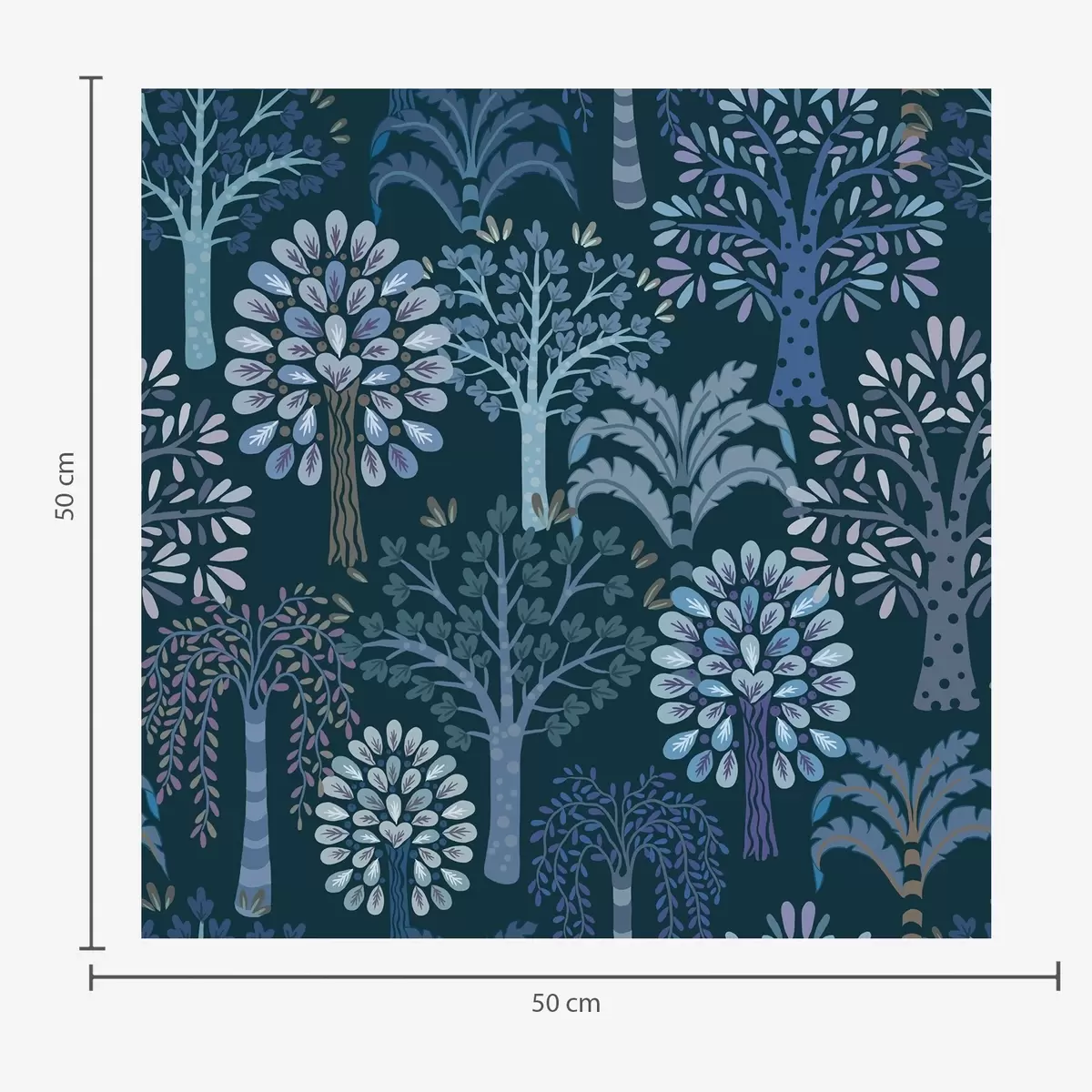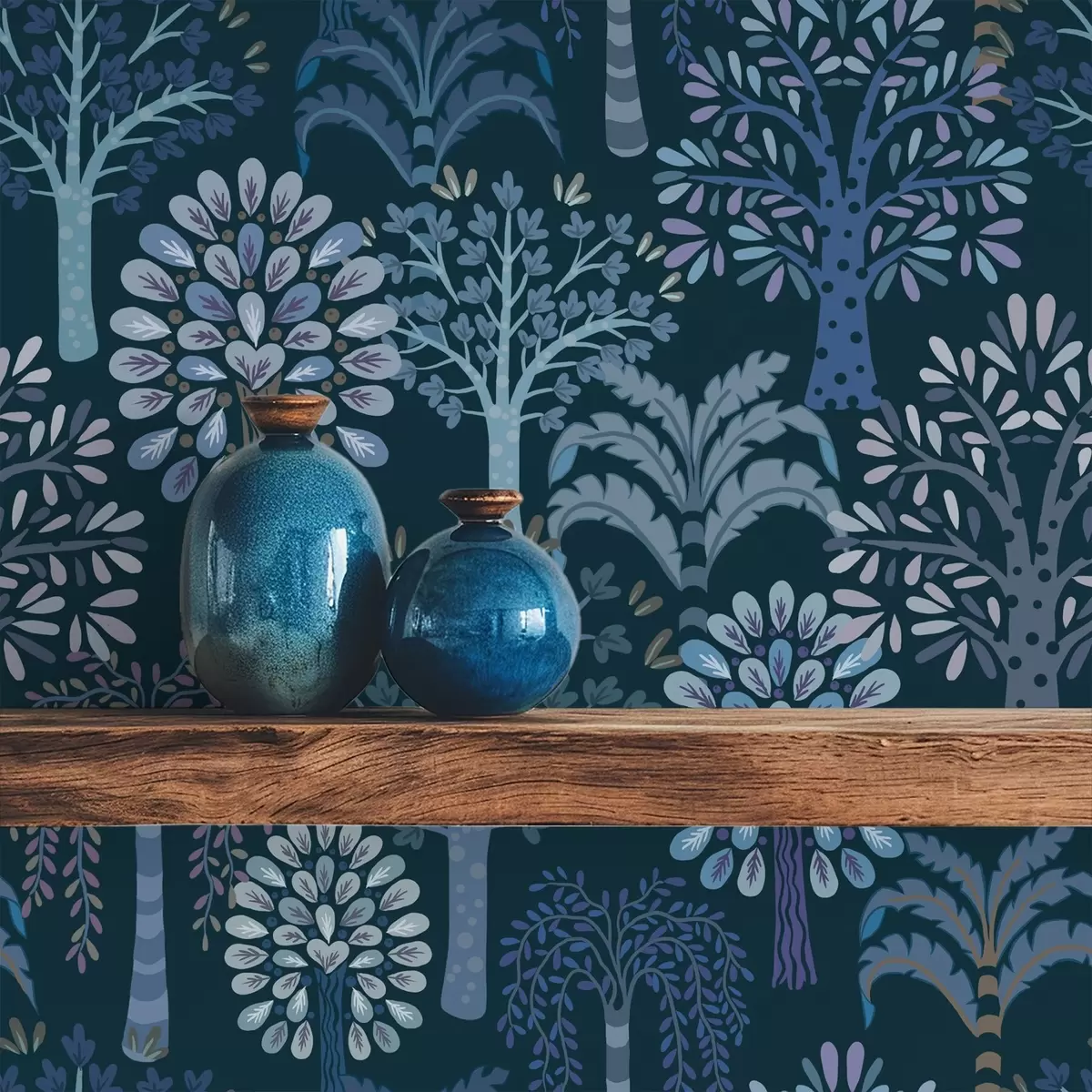 Tapeta Nočni gozd z okrasnimi drevesi v modrih odtenkih Št. a00960v2