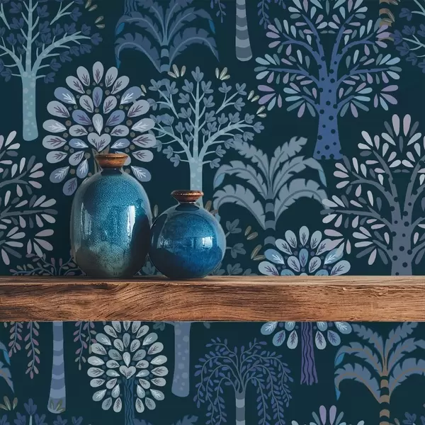 Tapeta Nočni gozd z okrasnimi drevesi v modrih odtenkih Št. a00960v2