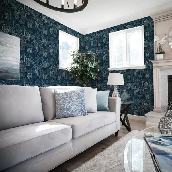 Tapeta Nočni gozd z okrasnimi drevesi v modrih odtenkih Št. a00960v2