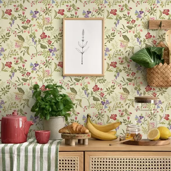 Tapeta Cvetoči vrt z jagodami, grozdjem in divjimi cvetovi Št. a00961