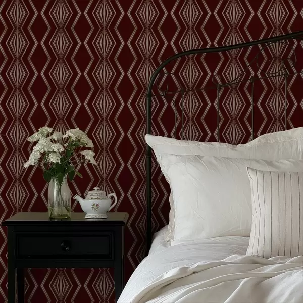 Tapeta Burgundsko ozadje z ritmičnimi rombi in cikcakastimi črtami Št. a00974