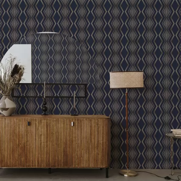 Tapeta Temno modro ozadje z geometrijskimi rombi in cikcakastimi vzorci Št. a00974v2