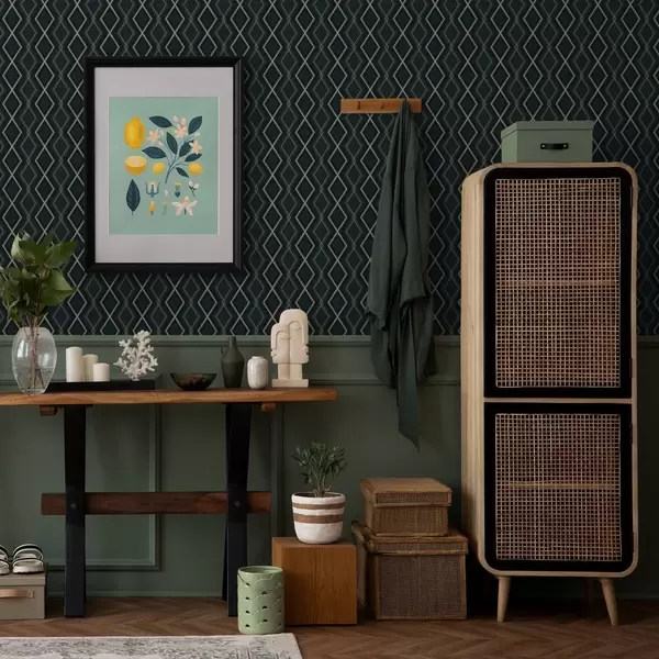 Tapeta Temno modrozeleno ozadje z ponavljajočim se rombastim vzorcem Št. a00975v1