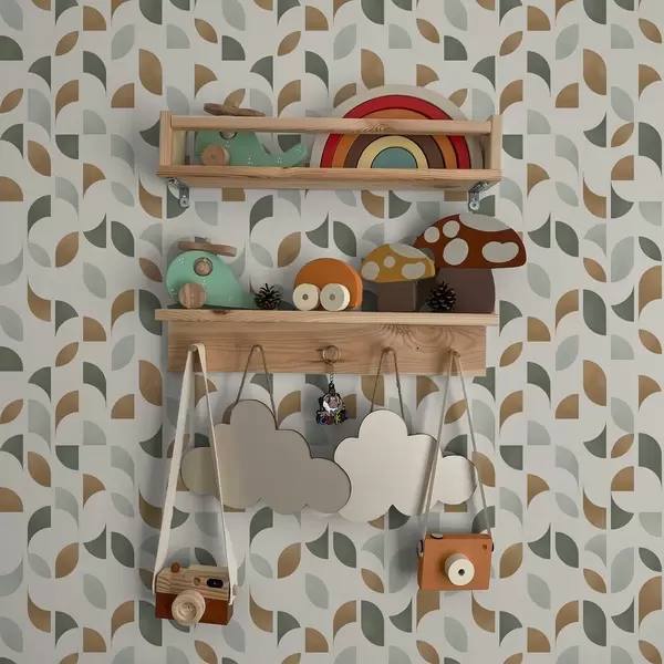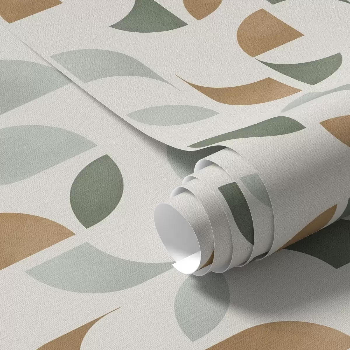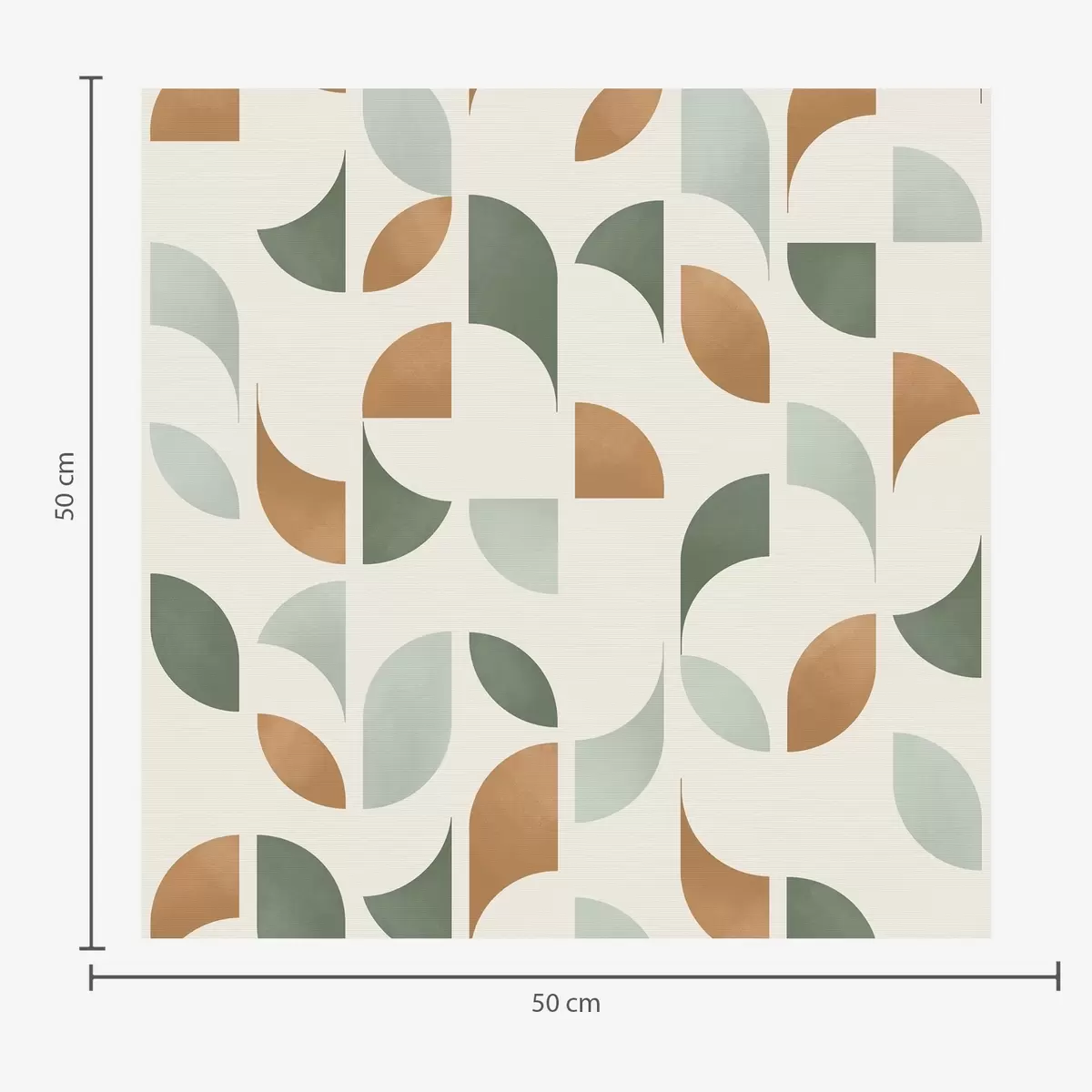 Tapeta Abstraktni polkrogi in listi v zeleni in terakotni barvi Št. a00985