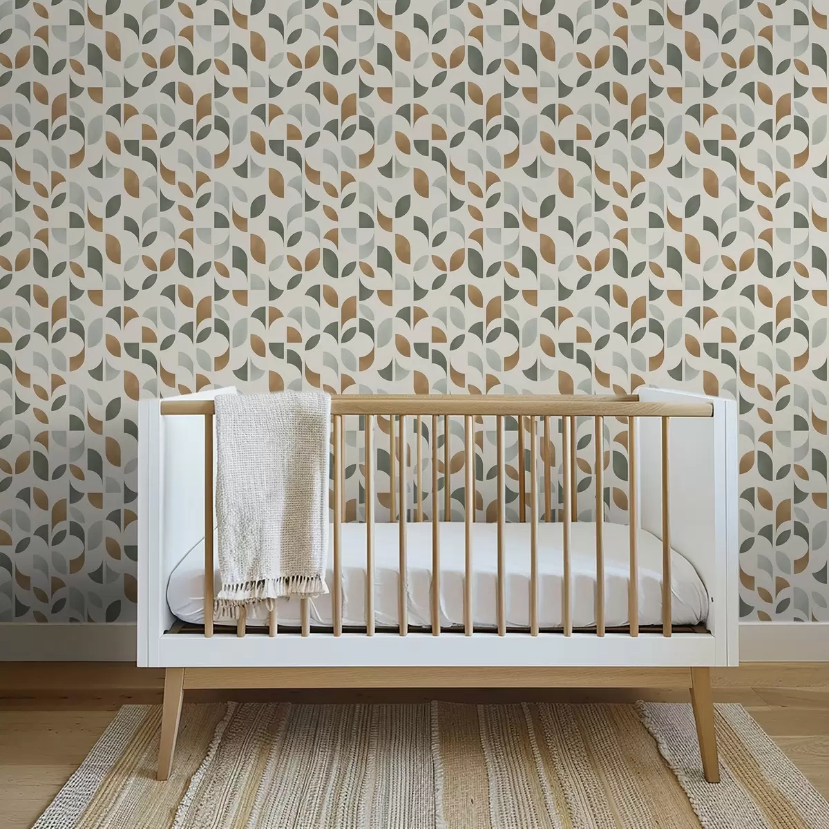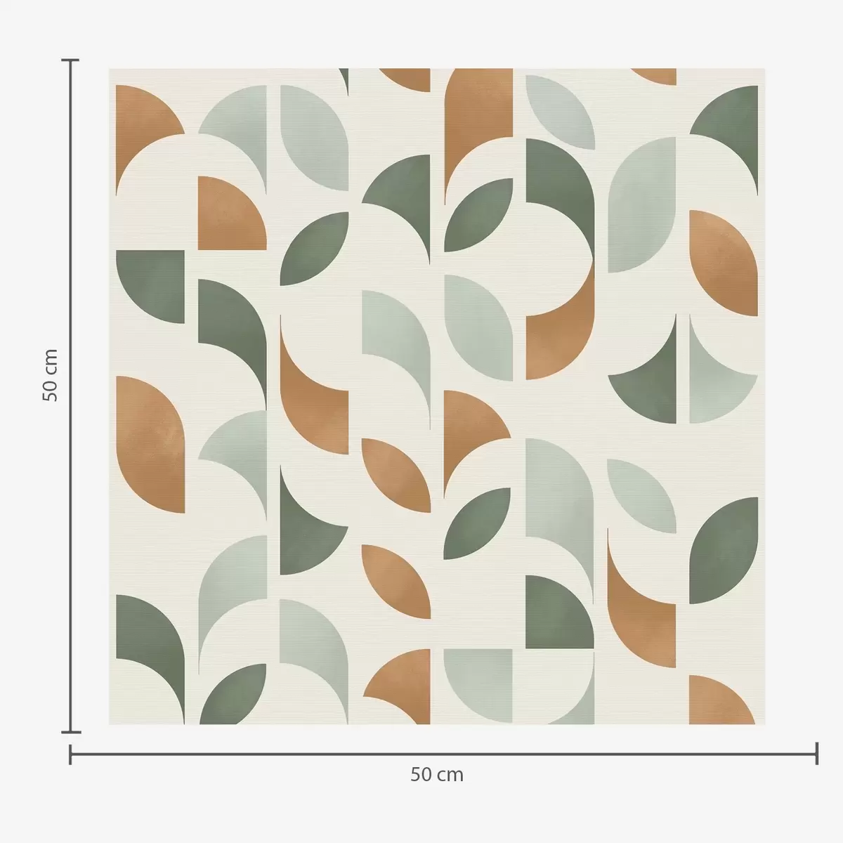 Tapeta Vertikalni stebri iz polkrogov in listov, zeleno-terakota Št. a00986