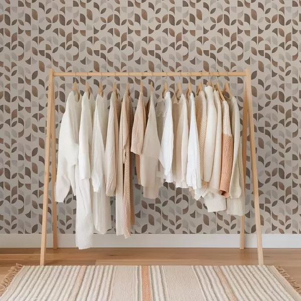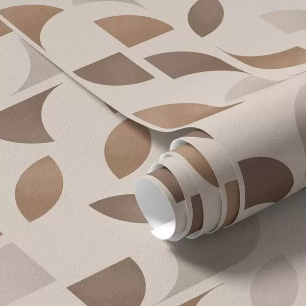 Tapeta Ritem polkrogov in listov v toplih karamelnorjavih odtenkih Št. a00986v1