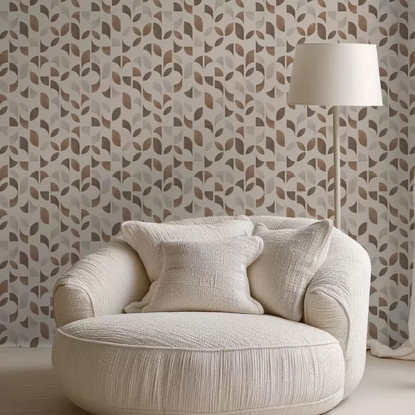 Tapeta Ritem polkrogov in listov v toplih karamelnorjavih odtenkih Št. a00986v1