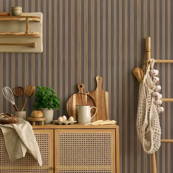 Tapeta Vertikalne lesene letve s temnosivimi vložki Št. a00991