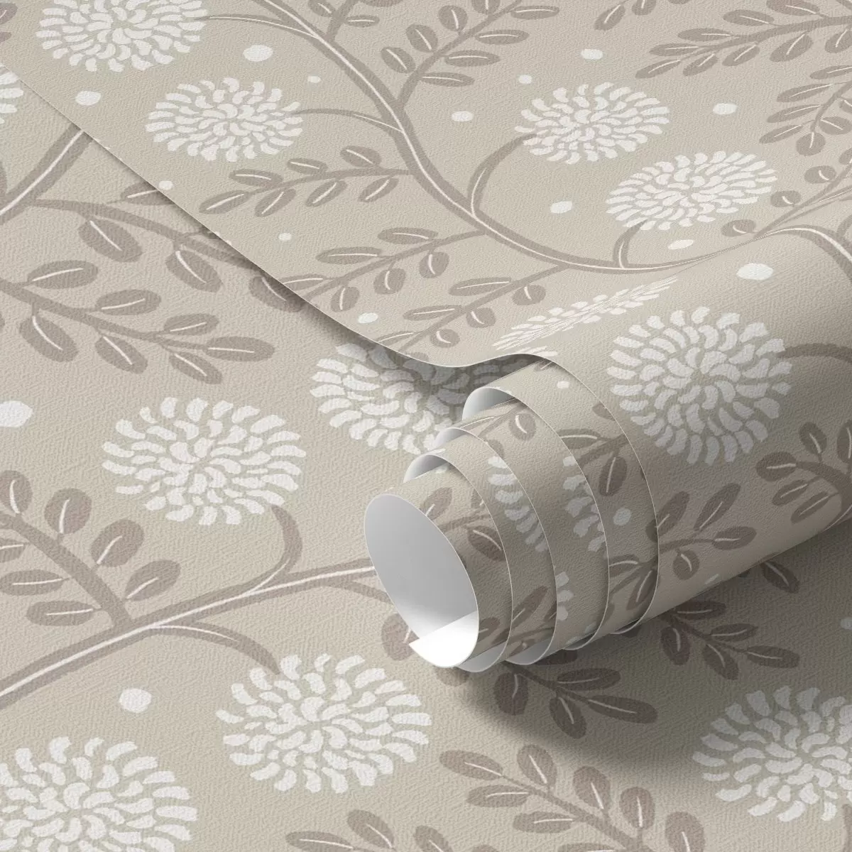 Tapeta Bež stebla z belimi puhastimi cvetovi in mehkimi pikami Št. a00997