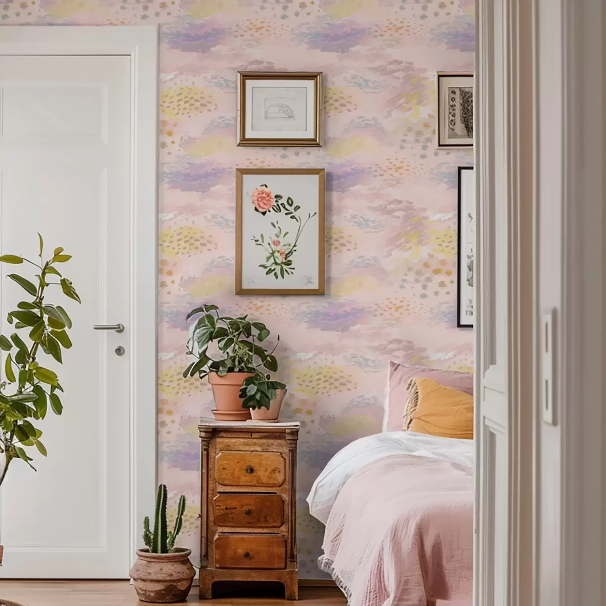 Tapeta Roza pastelna abstrakcija z mehkimi čopičnimi potezami Št. a00999v2