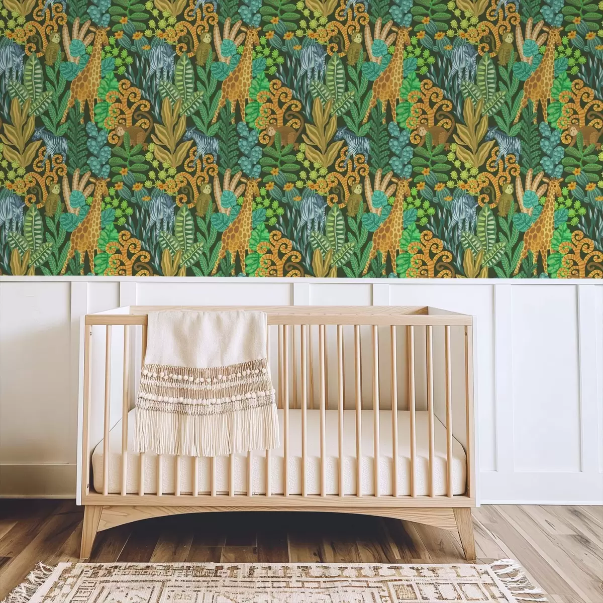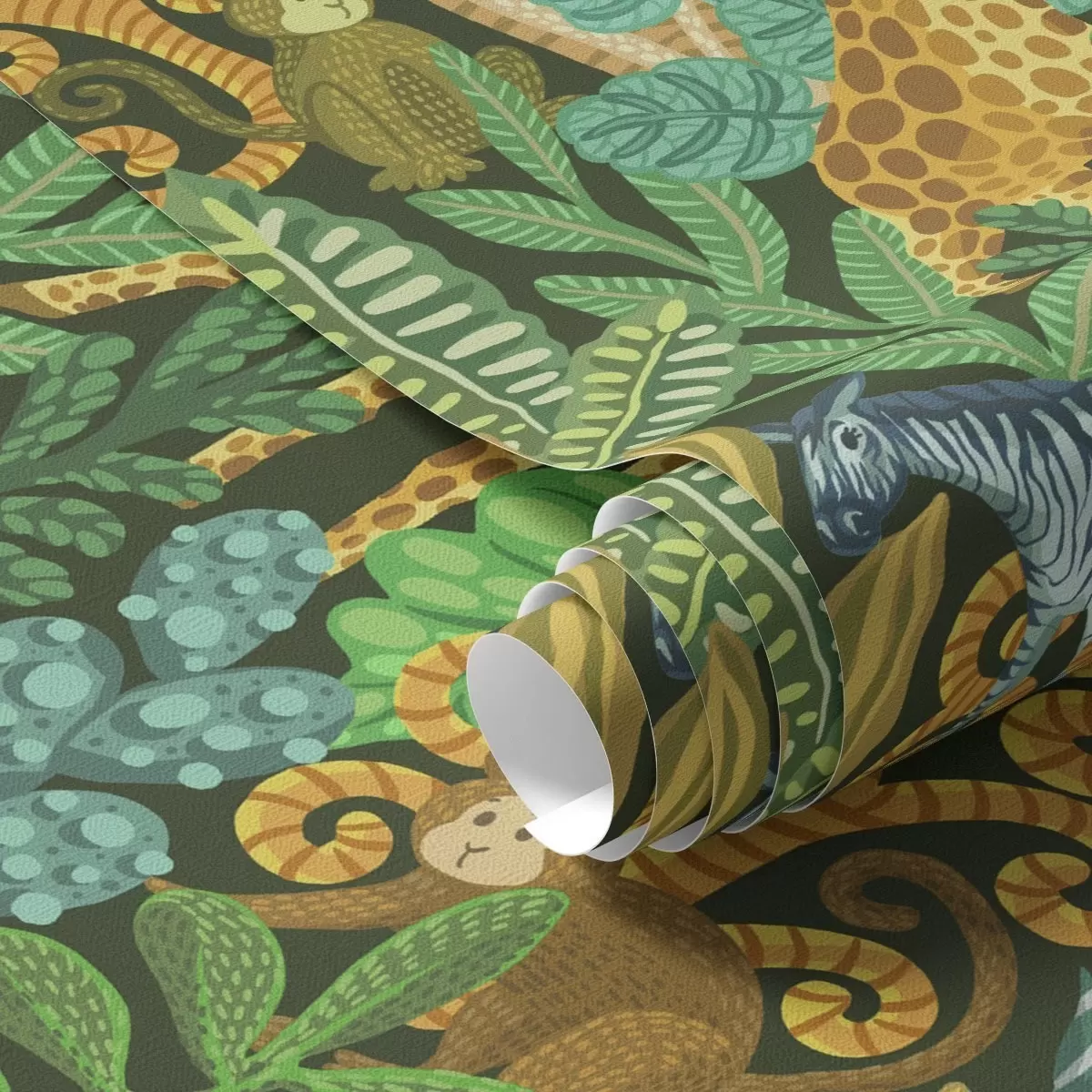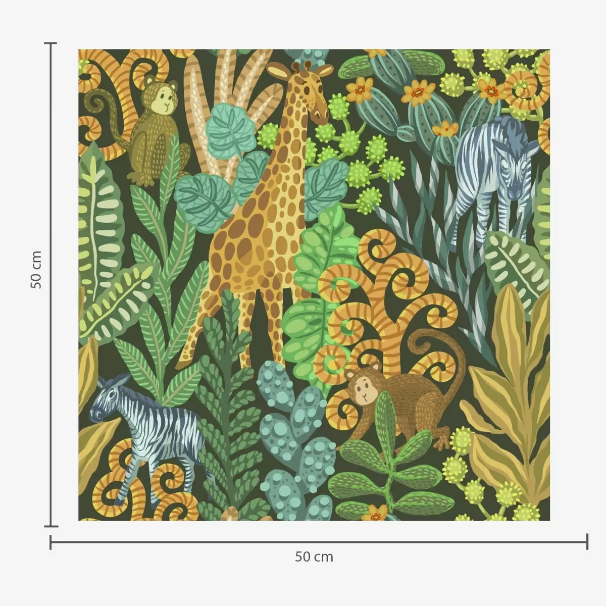 Tapeta Gosta džungla z živalmi na temno zelenem ozadju Št. a01000v2
