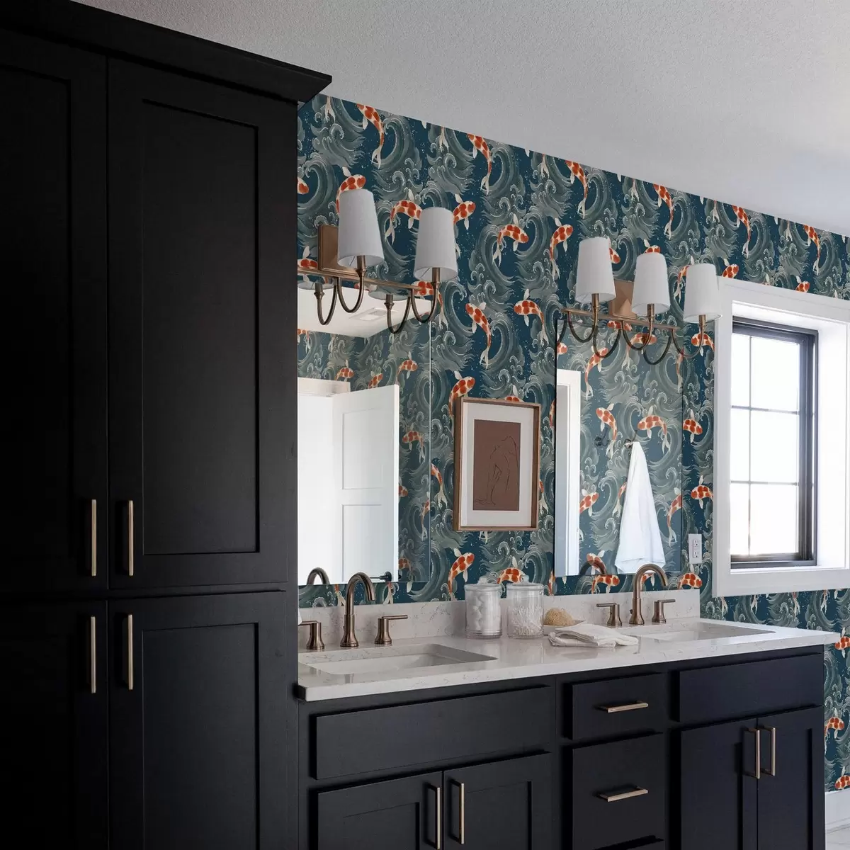 Tapeta Koi ribe plavajo med dramatičnimi oceanskimi valovi Št. a01019