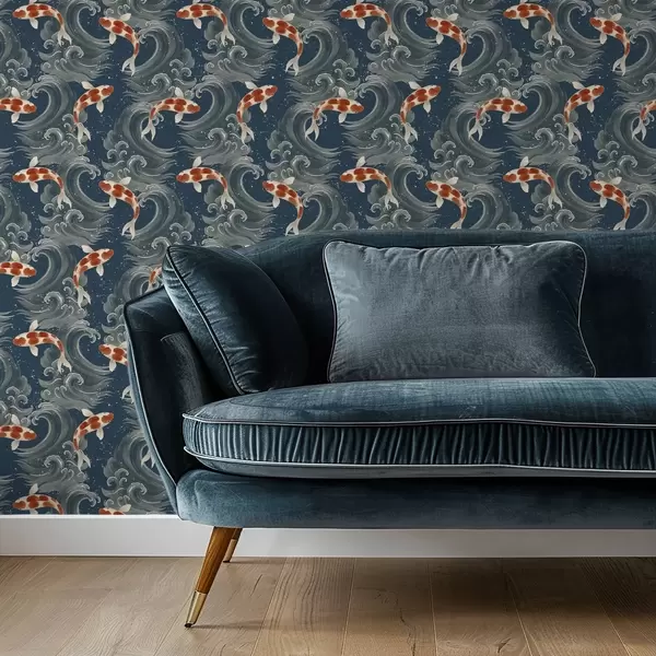 Tapeta Koi ribe plavajo med dramatičnimi oceanskimi valovi Št. a01019
