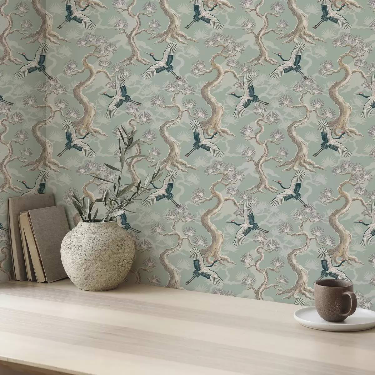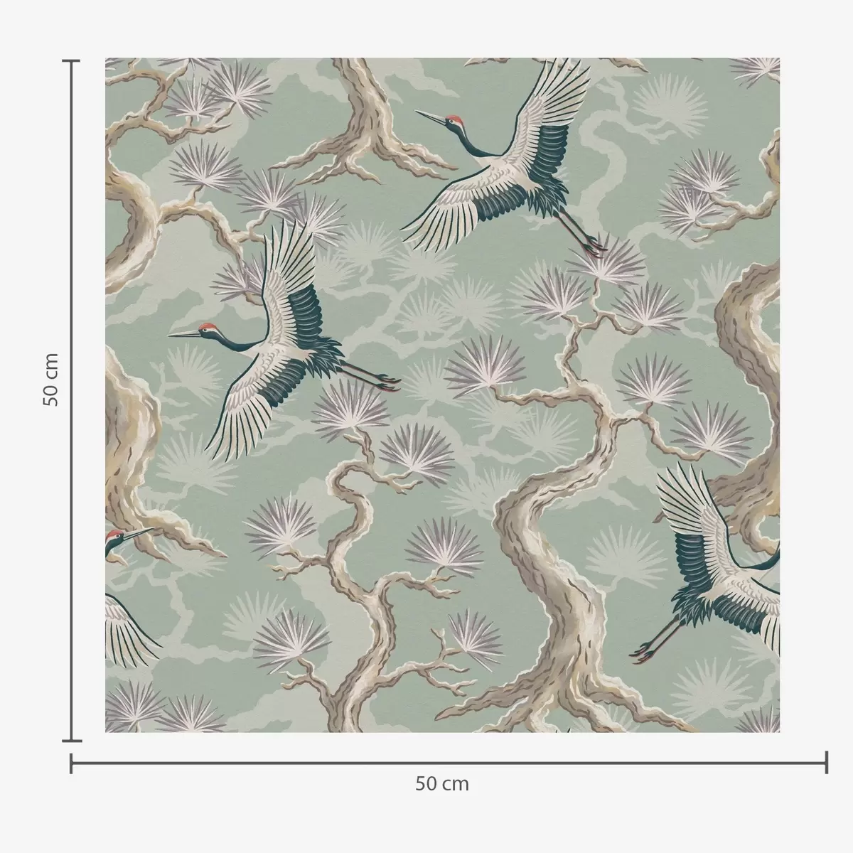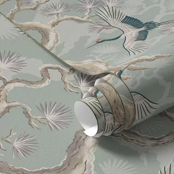 Tapeta Žerjavi med ukrivljenimi vejami na mehkem sivkastem ozadju Št. a01023