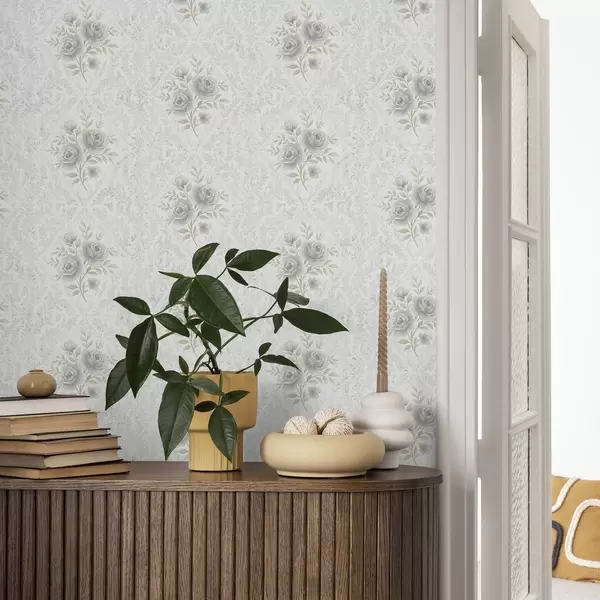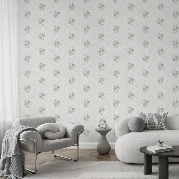 Tapeta Svetel damastni vzorec s sivimi vrtnicami v mehkih rombih Št. a01024