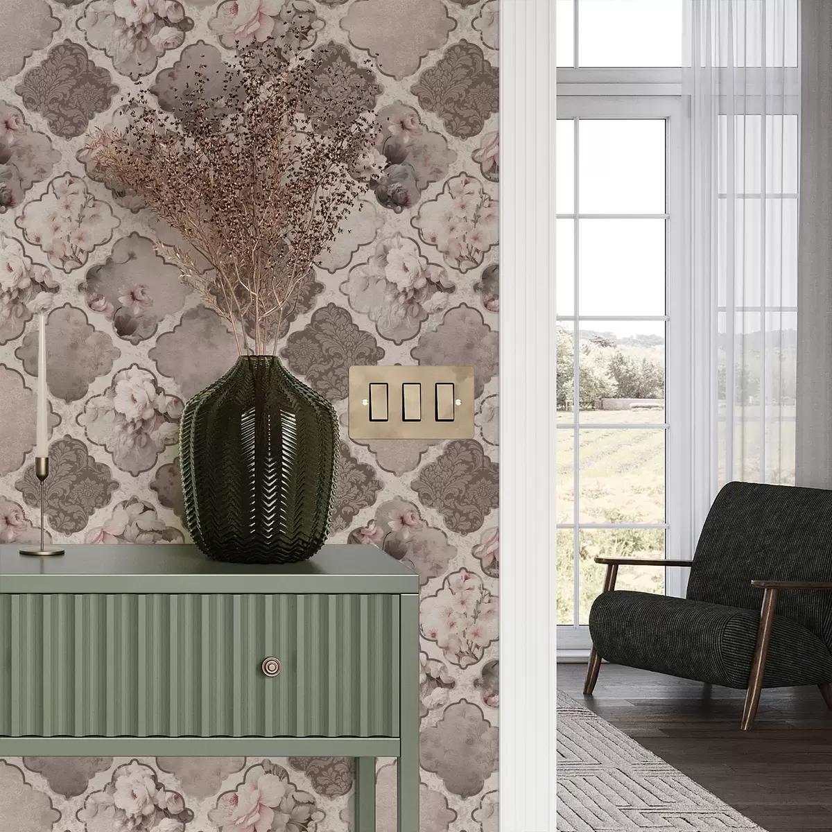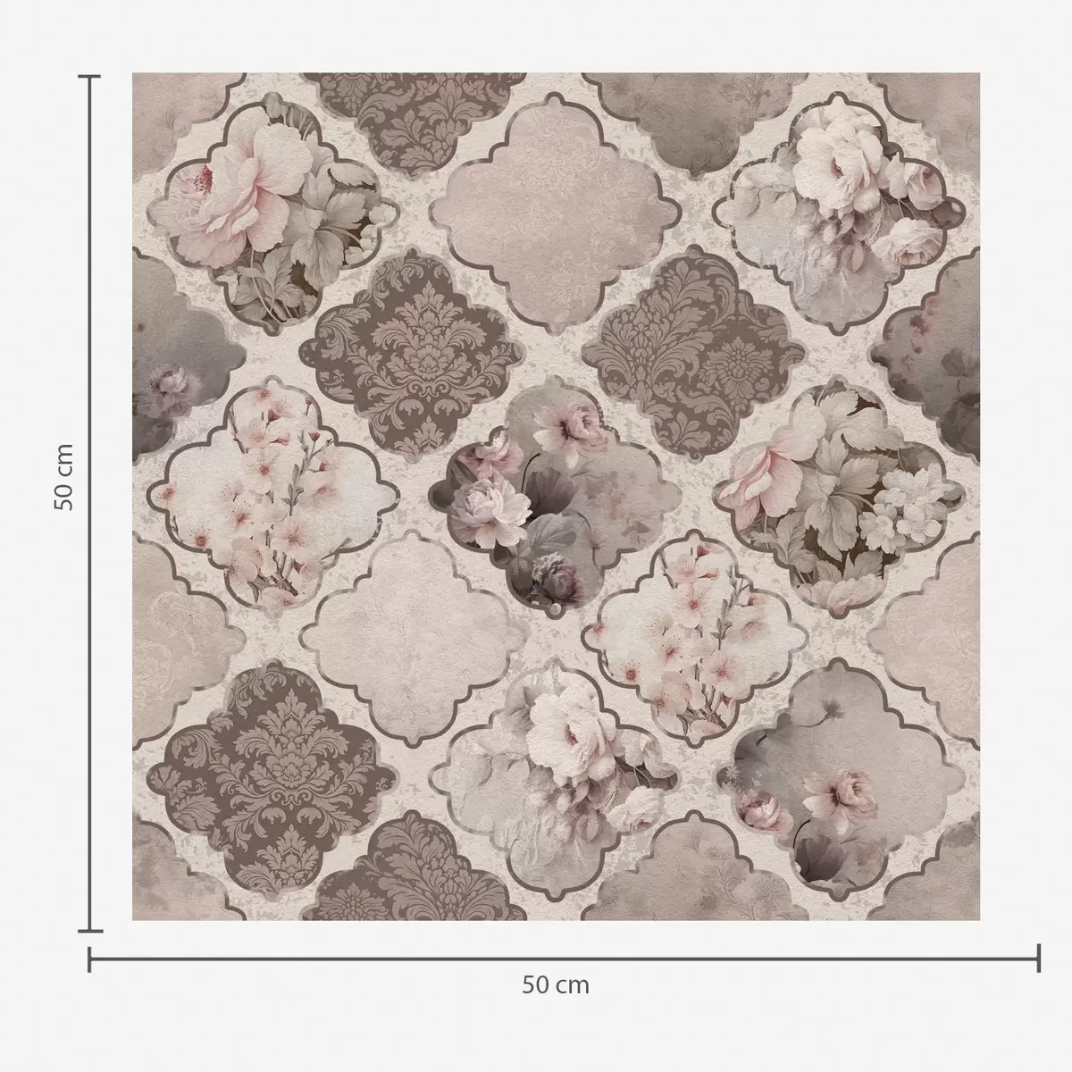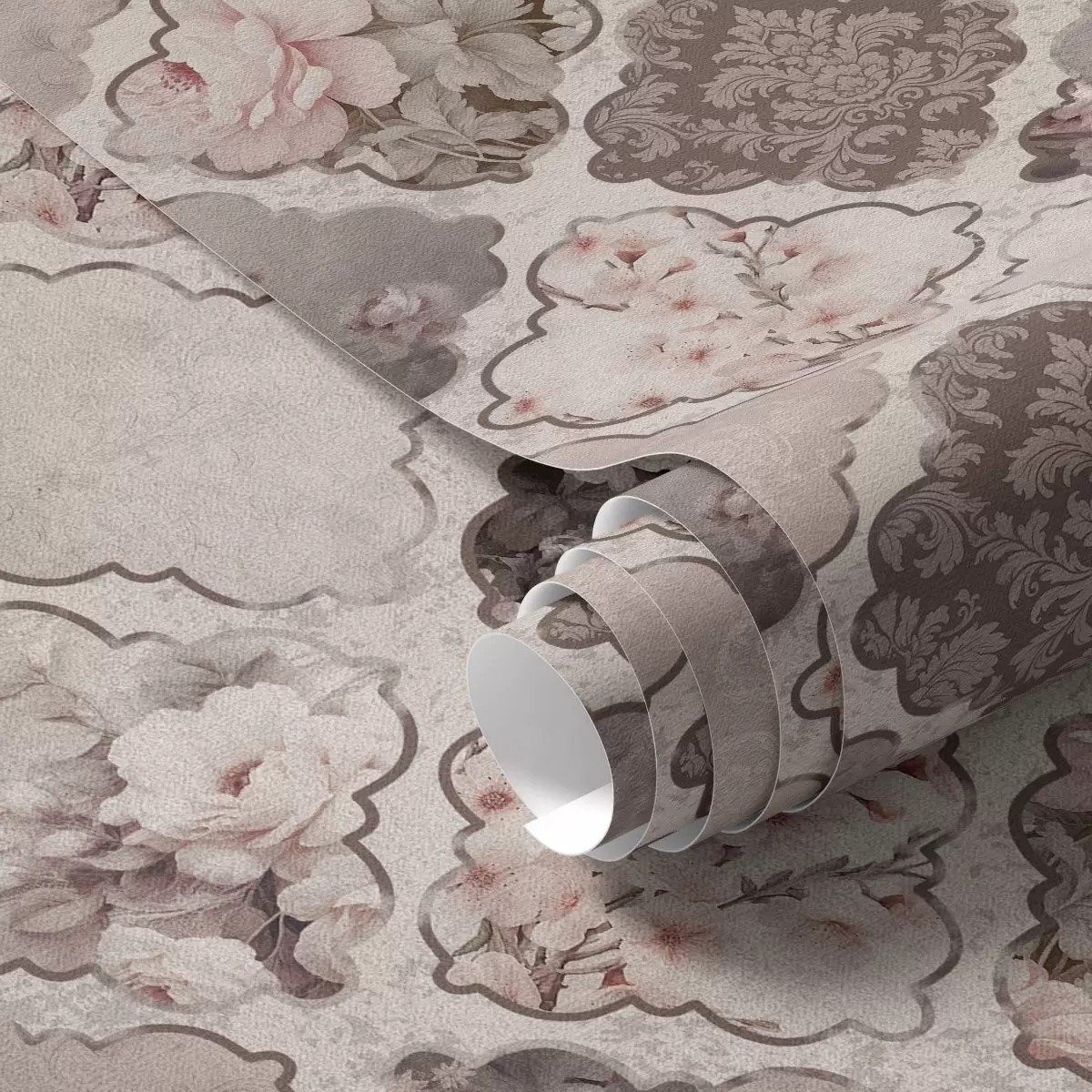 Tapeta Romantična mozaika cvetličnih medaljonov v prašnih odtenkih Št. a01027