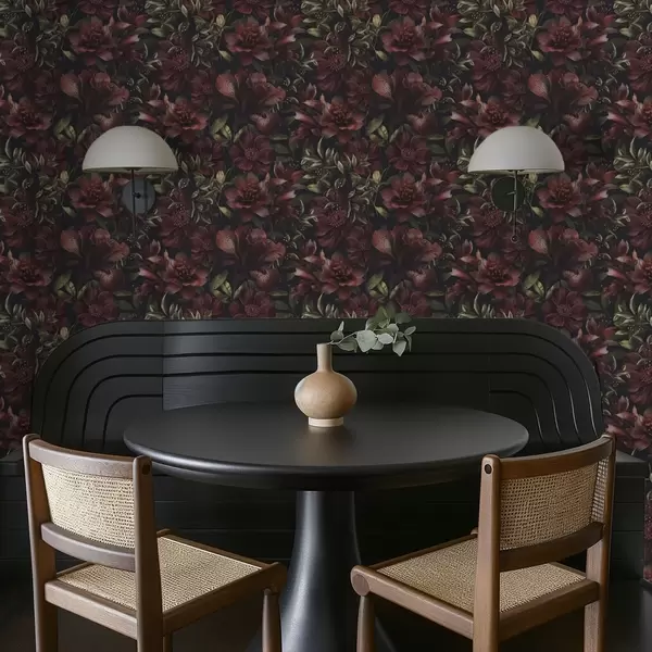 Tapeta Bogate burgundske cvetlice na temnem ozadju Št. a01032