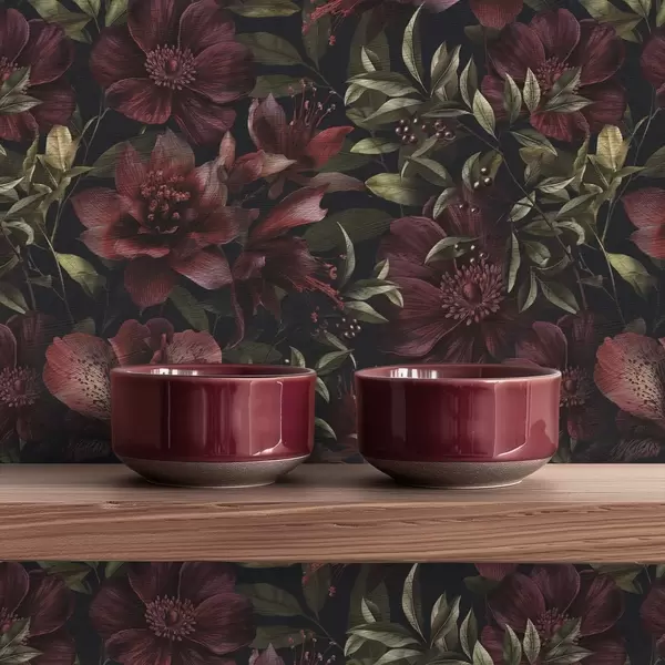 Tapeta Bogate burgundske cvetlice na temnem ozadju Št. a01032