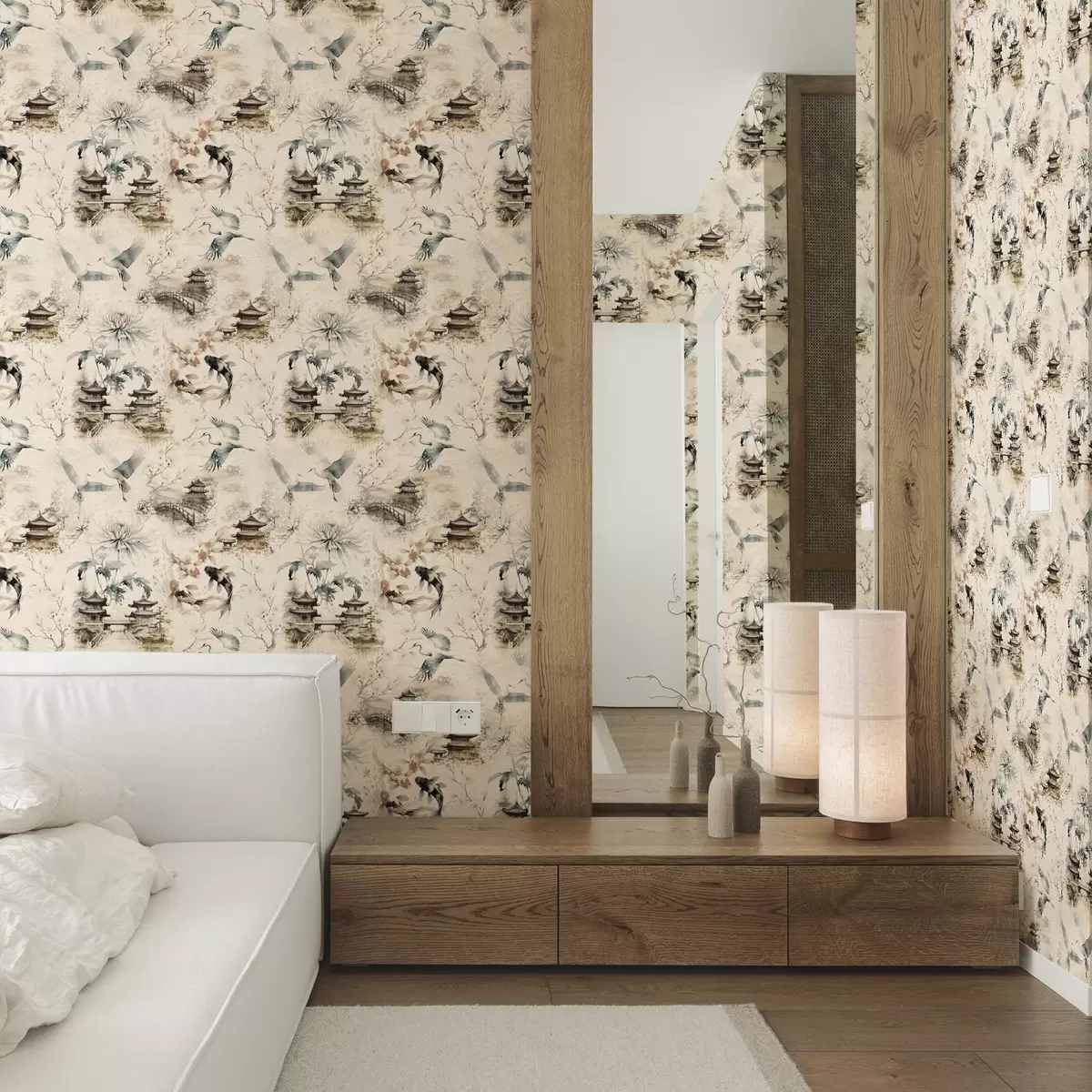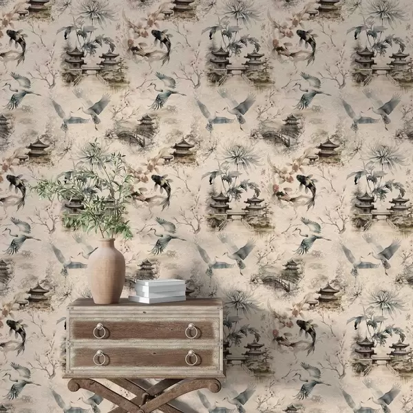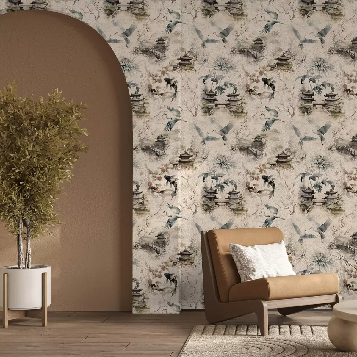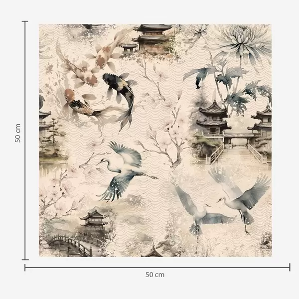 Tapeta Japonski templji, koi ribe in žerjavi na mehkem ozadju Št. a01040