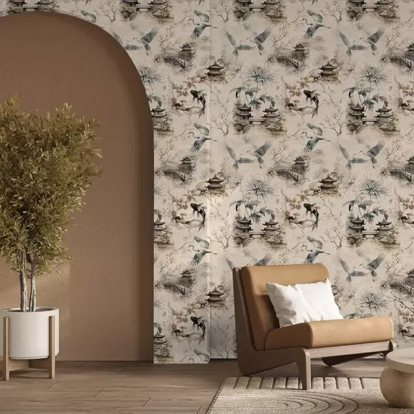 Tapeta Japonski templji, koi ribe in žerjavi na mehkem ozadju Št. a01040