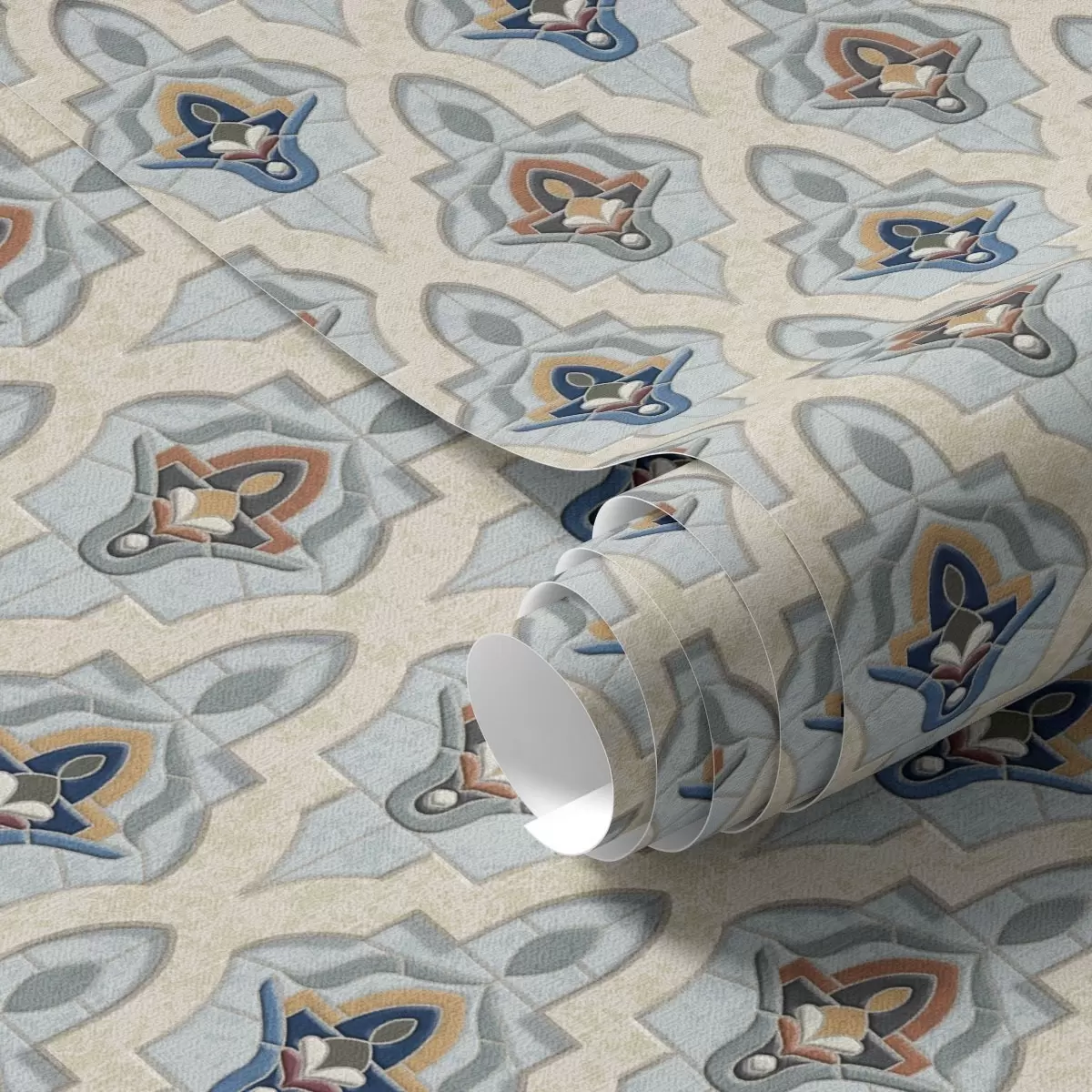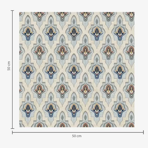 Tapeta Orientalski vzorec majhnih ploščic v modro-peščeni barvni paleti Št. a01044