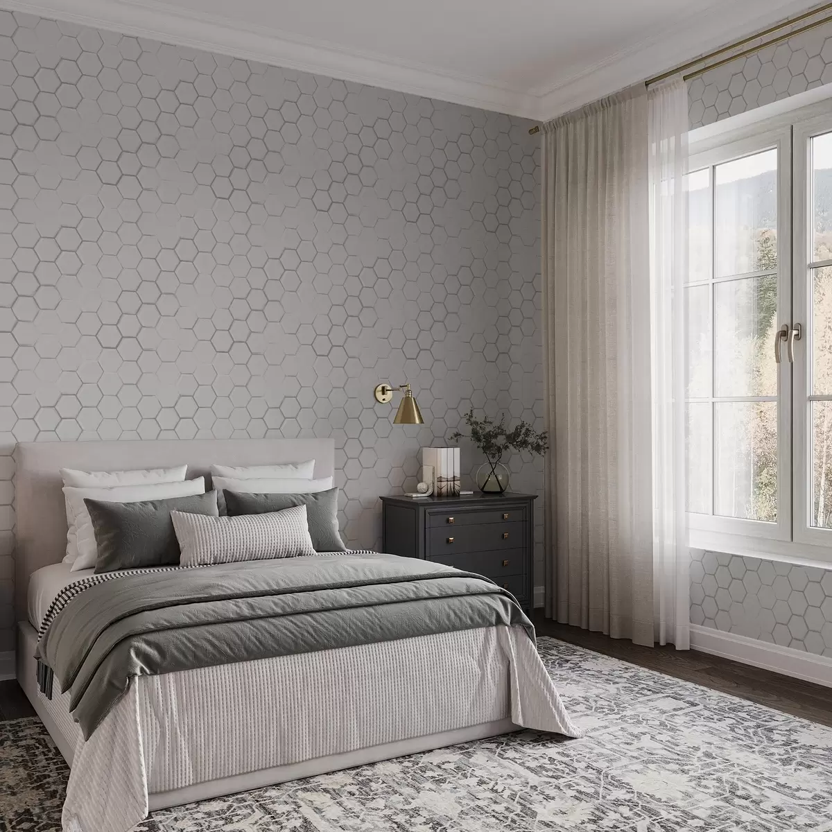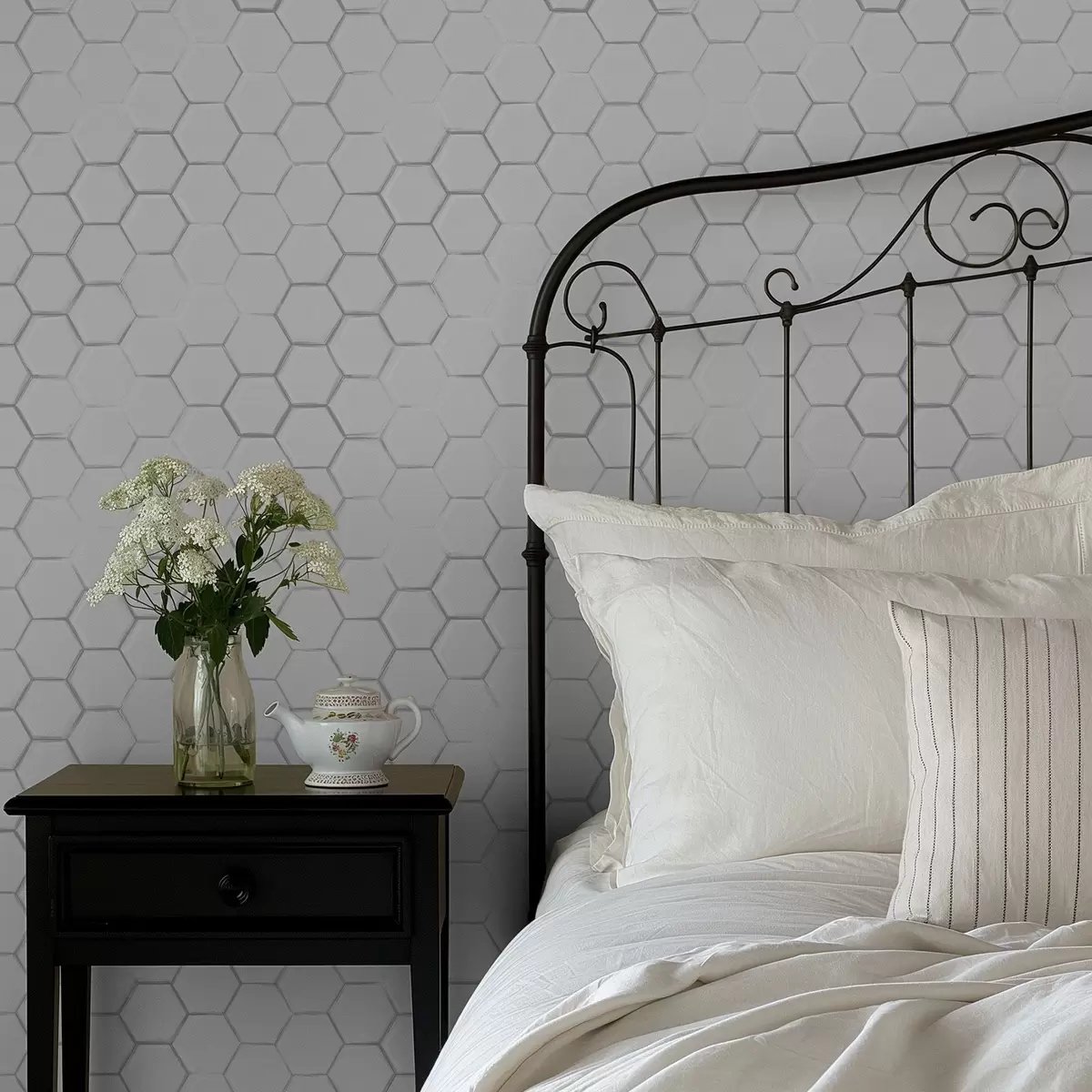 Tapeta Beli tridimenzionalni šesterokotniki na gladkem ozadju Št. a01059