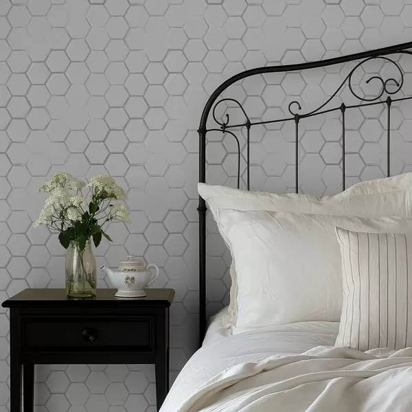 Tapeta Beli tridimenzionalni šesterokotniki na gladkem ozadju Št. a01059