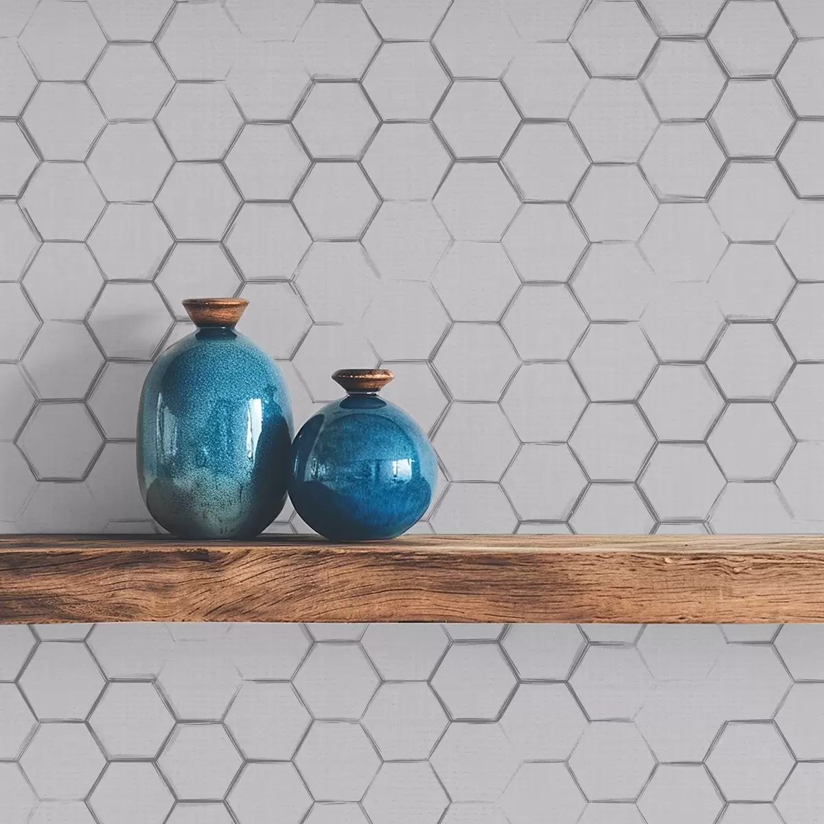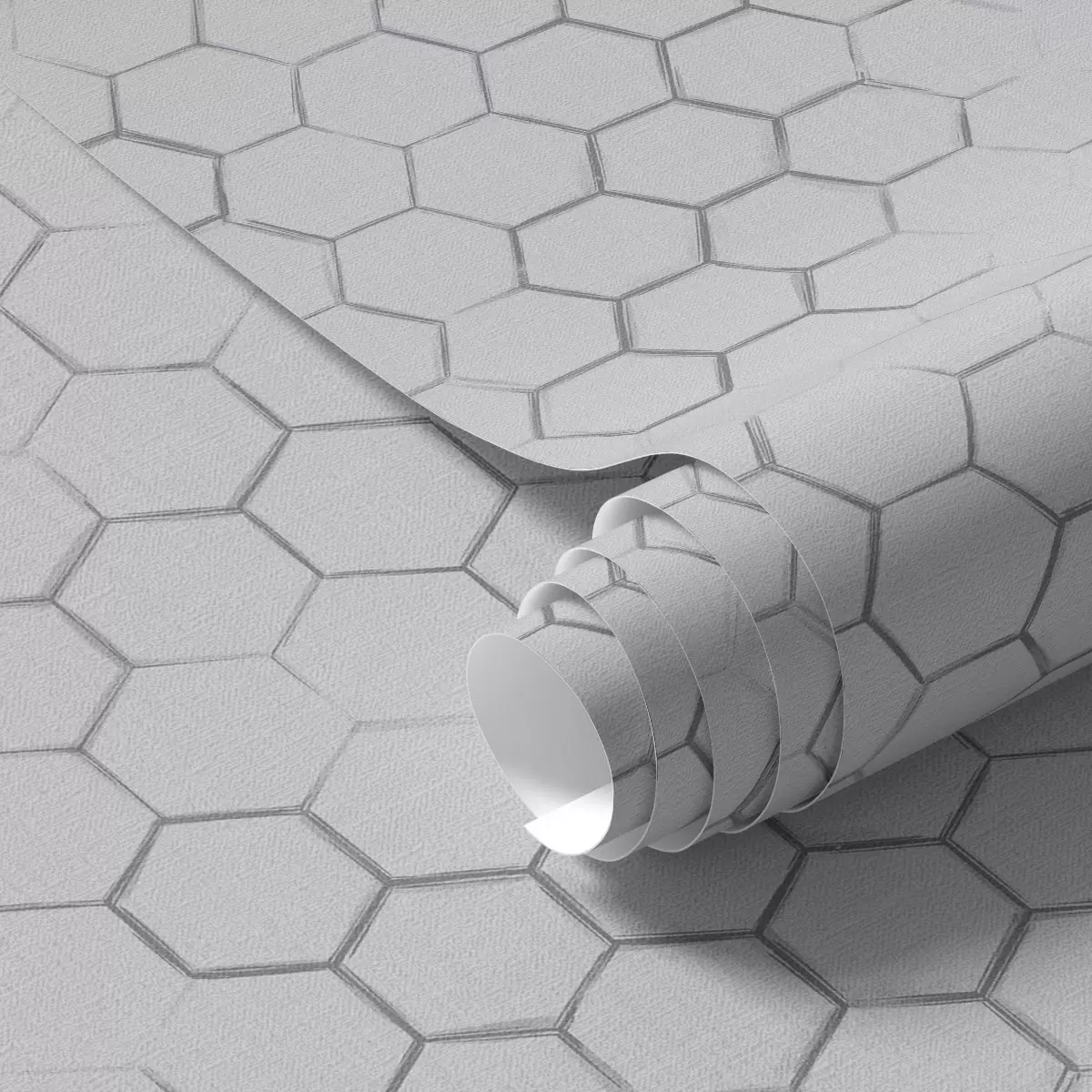 Tapeta Fina šestkotna mreža na svetlo sivem teksturiranem ozadju Št. a01060