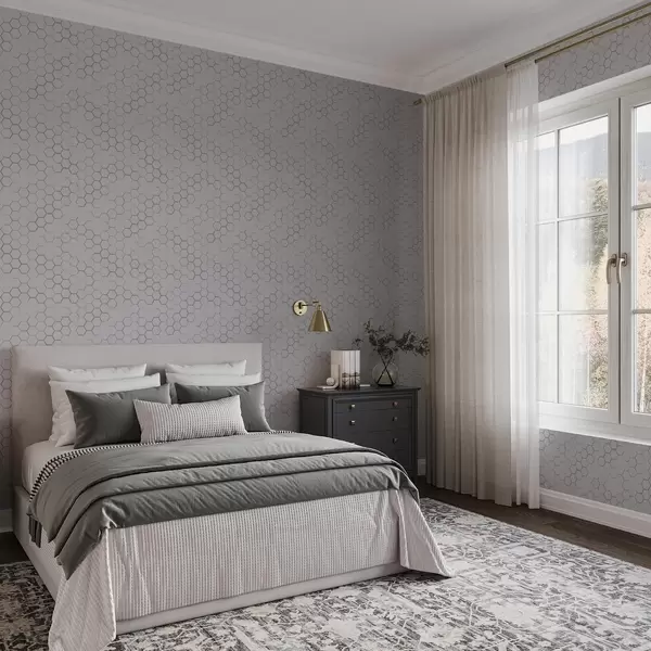 Tapeta Fina šestkotna mreža na svetlo sivem teksturiranem ozadju Št. a01060
