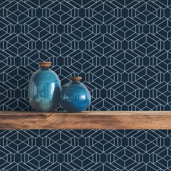 Tapeta Temno modra geometrijska mreža kock Št. a01066v1