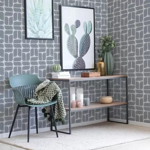 Tapeta Siva mozaika z izmeničnimi zaobljenimi in pravokotnimi oblikami Št. a01069