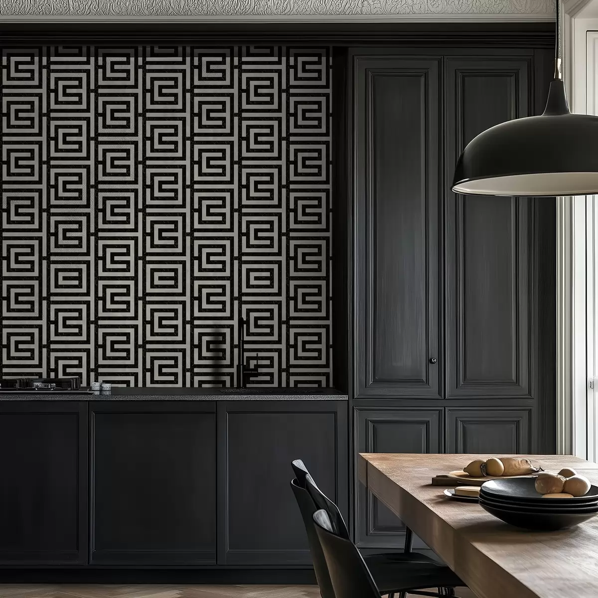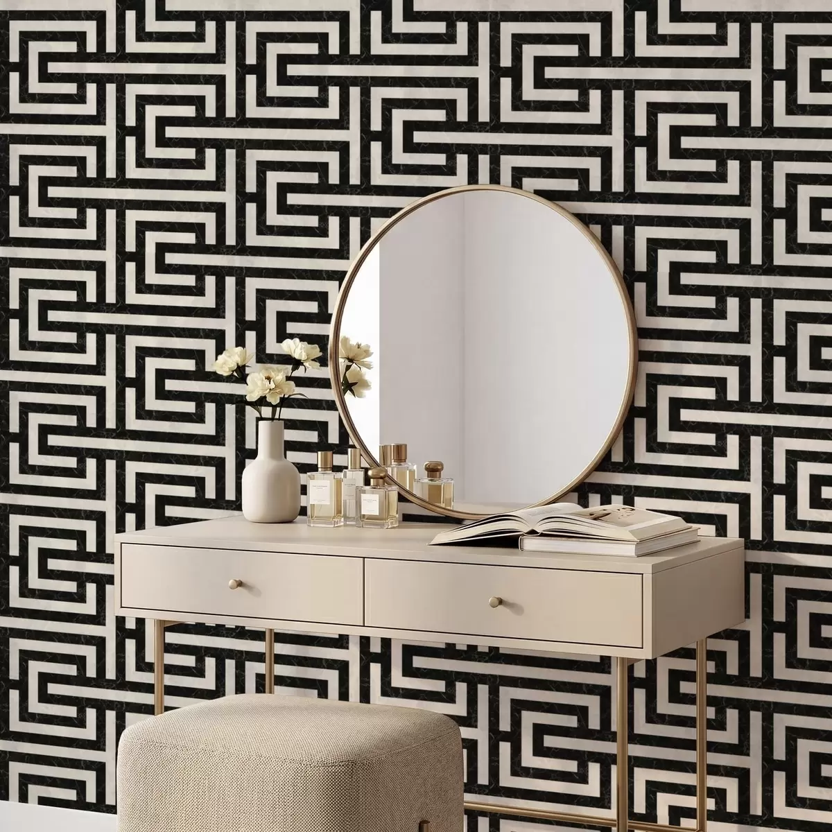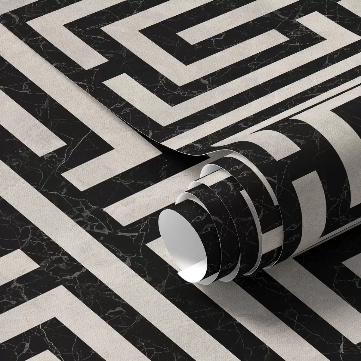 Tapeta Črno-beli geometrijski vzorec labirinta Št. a01073