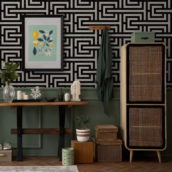 Tapeta Črno-beli geometrijski vzorec labirinta Št. a01073