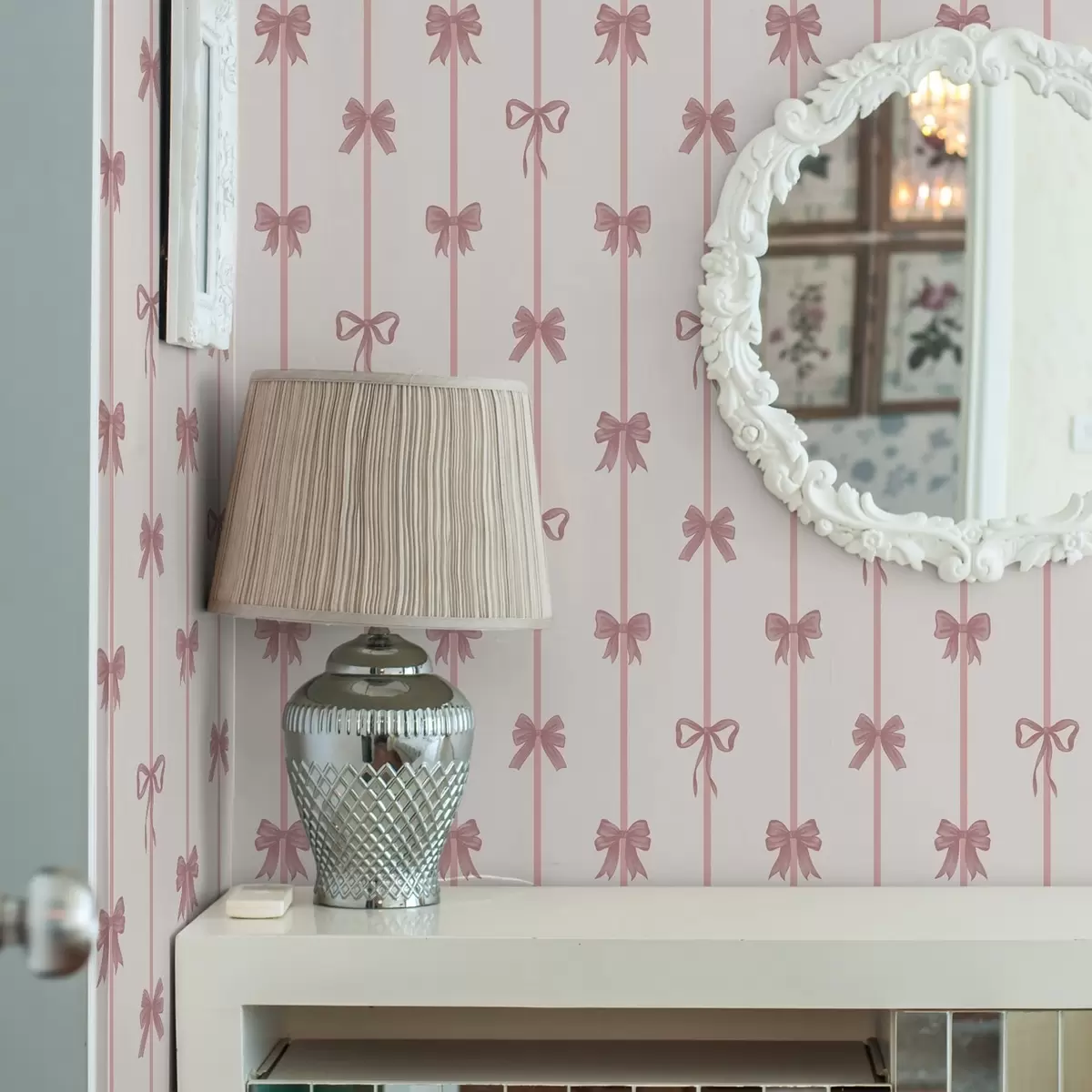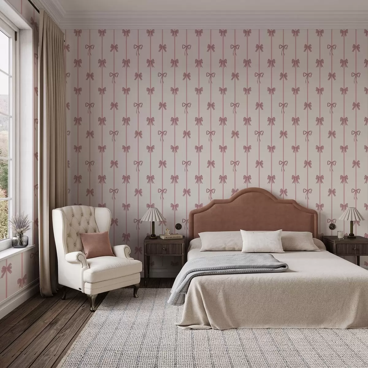 Tapeta Roza pentlje s trakovi na svetlem ozadju Št. a01074
