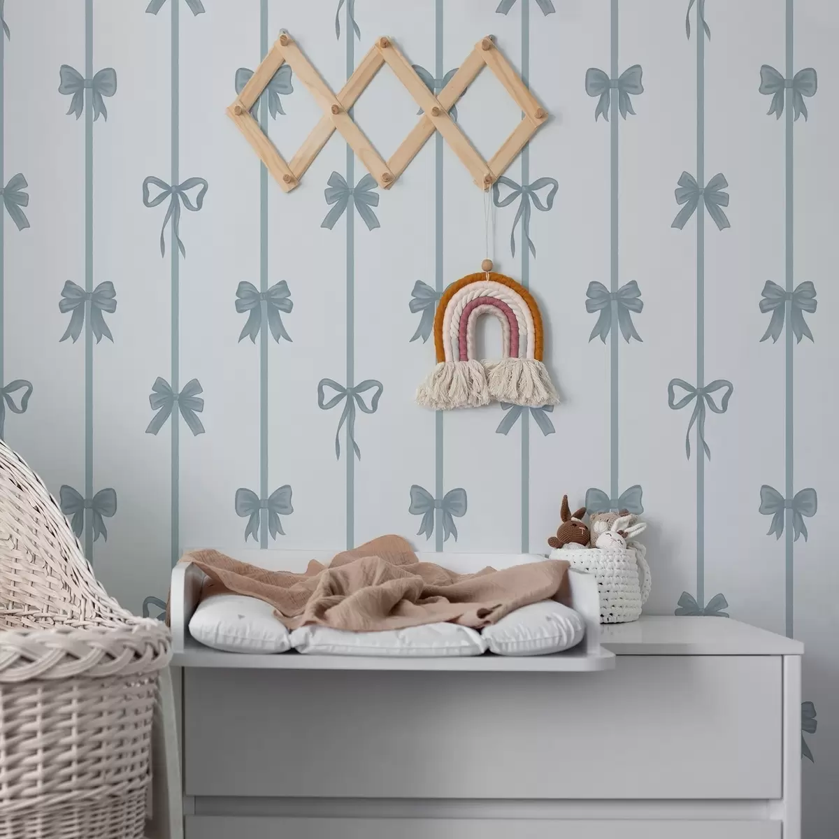 Tapeta Modre pentlje s trakovi na svetlem ozadju Št. a01074v2