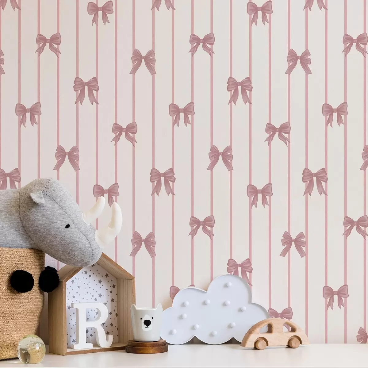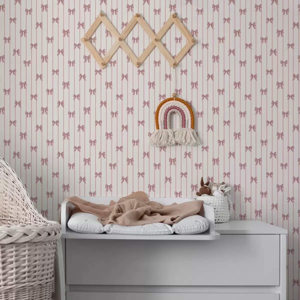 Tapeta Majhne roza pentlje v navpičnih črtah Št. a01076