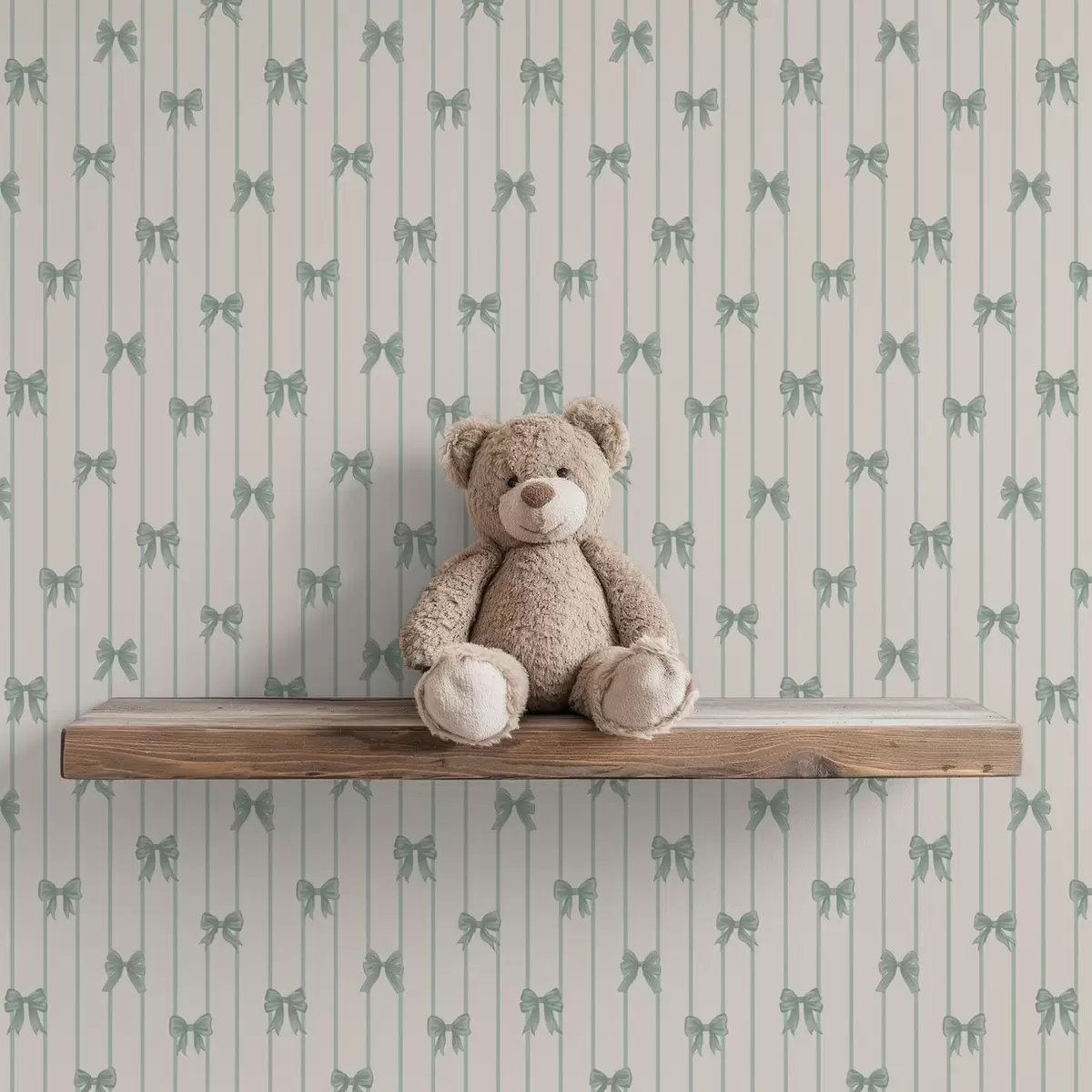 Tapeta Majhne zelene pentlje v črtastem vzorcu na bežem ozadju Št. a01076v2
