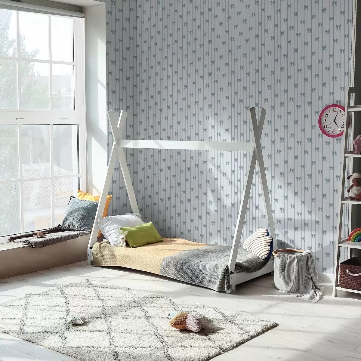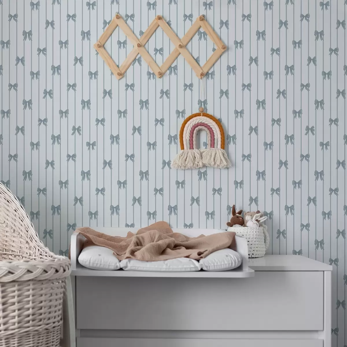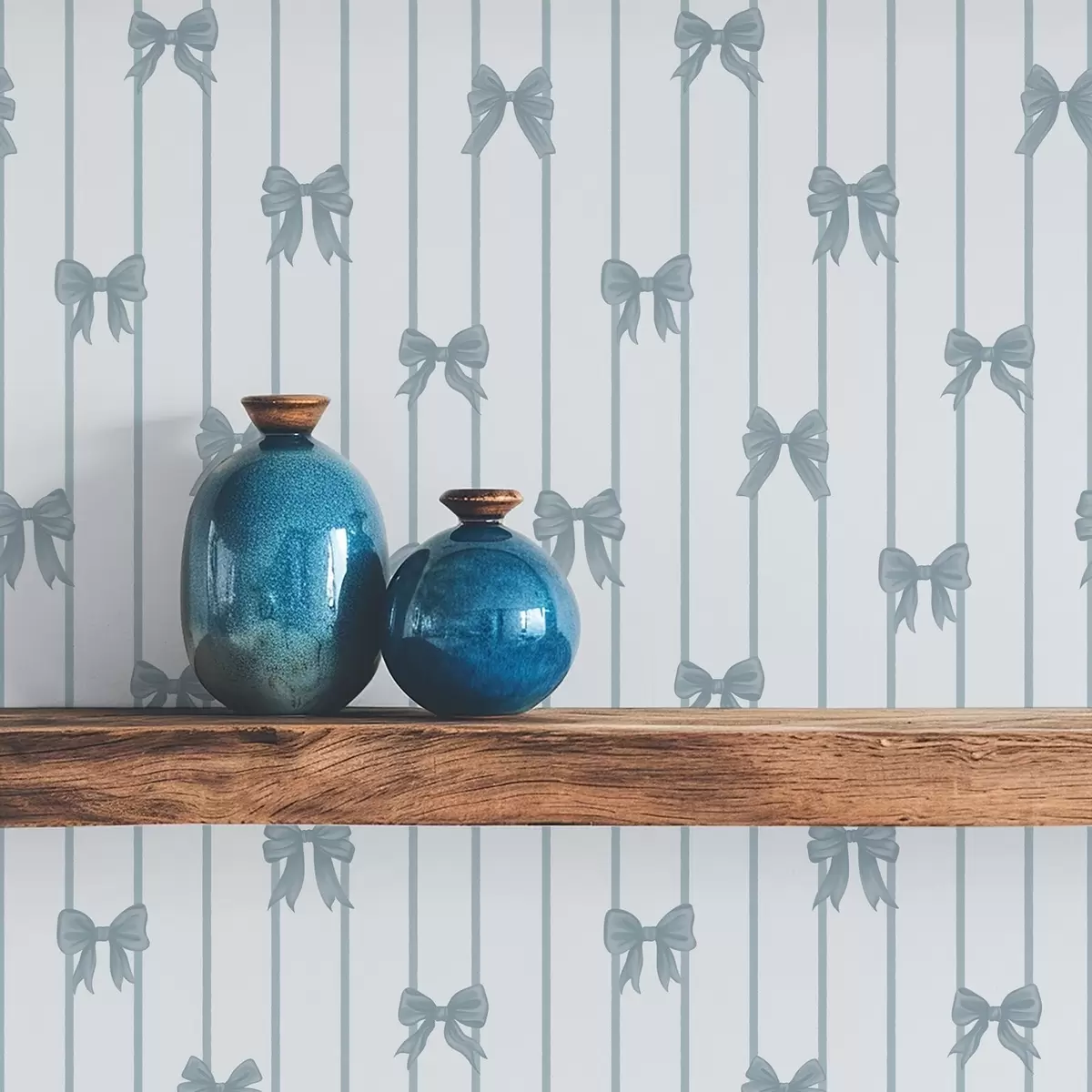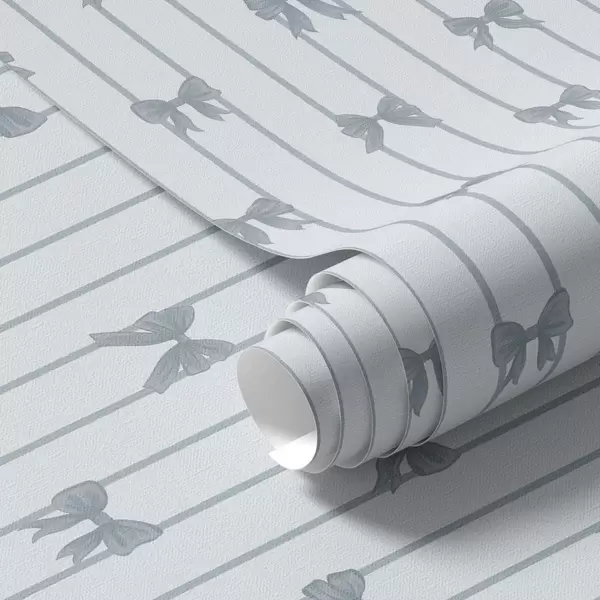 Tapeta Svetel črtast vzorec s trakovi in pentljami Št. a01076v3