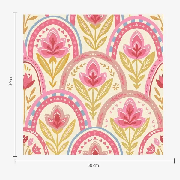 Tapeta Loki z rožnatimi cvetovi v ljudskem slogu Št. a01080