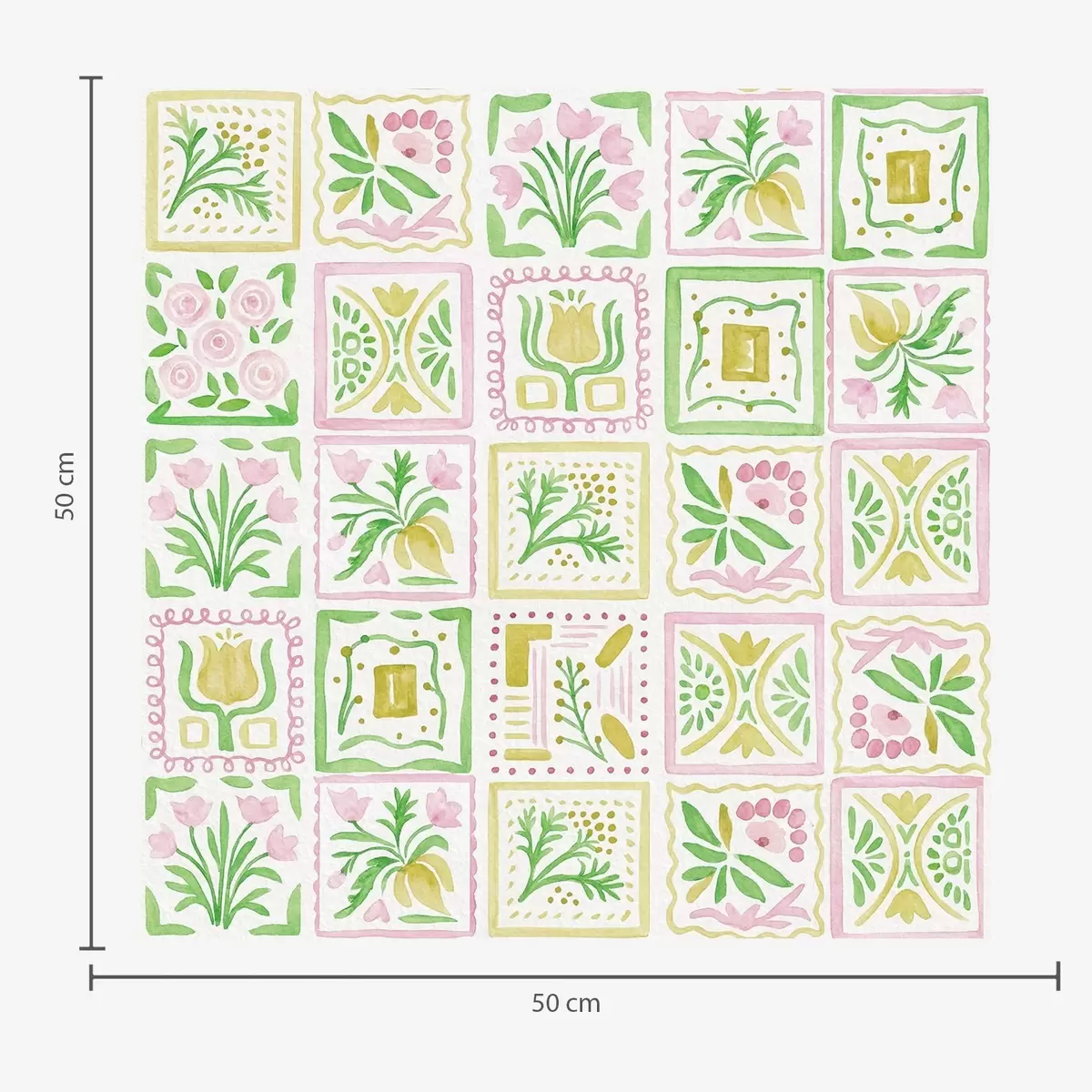 Tapeta Akrilni kvadratki z rožnatimi in zelenimi vejami Št. a01082