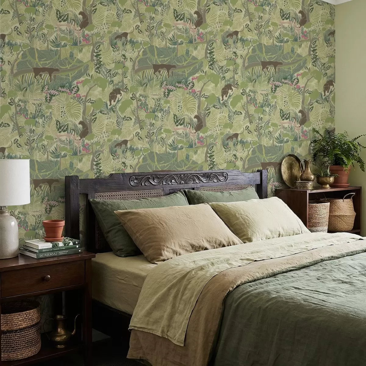 Tapeta Gozdna scena z živalmi in gosto listje Št. a01108