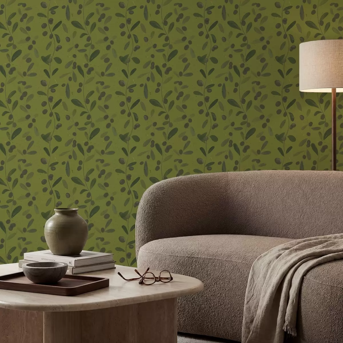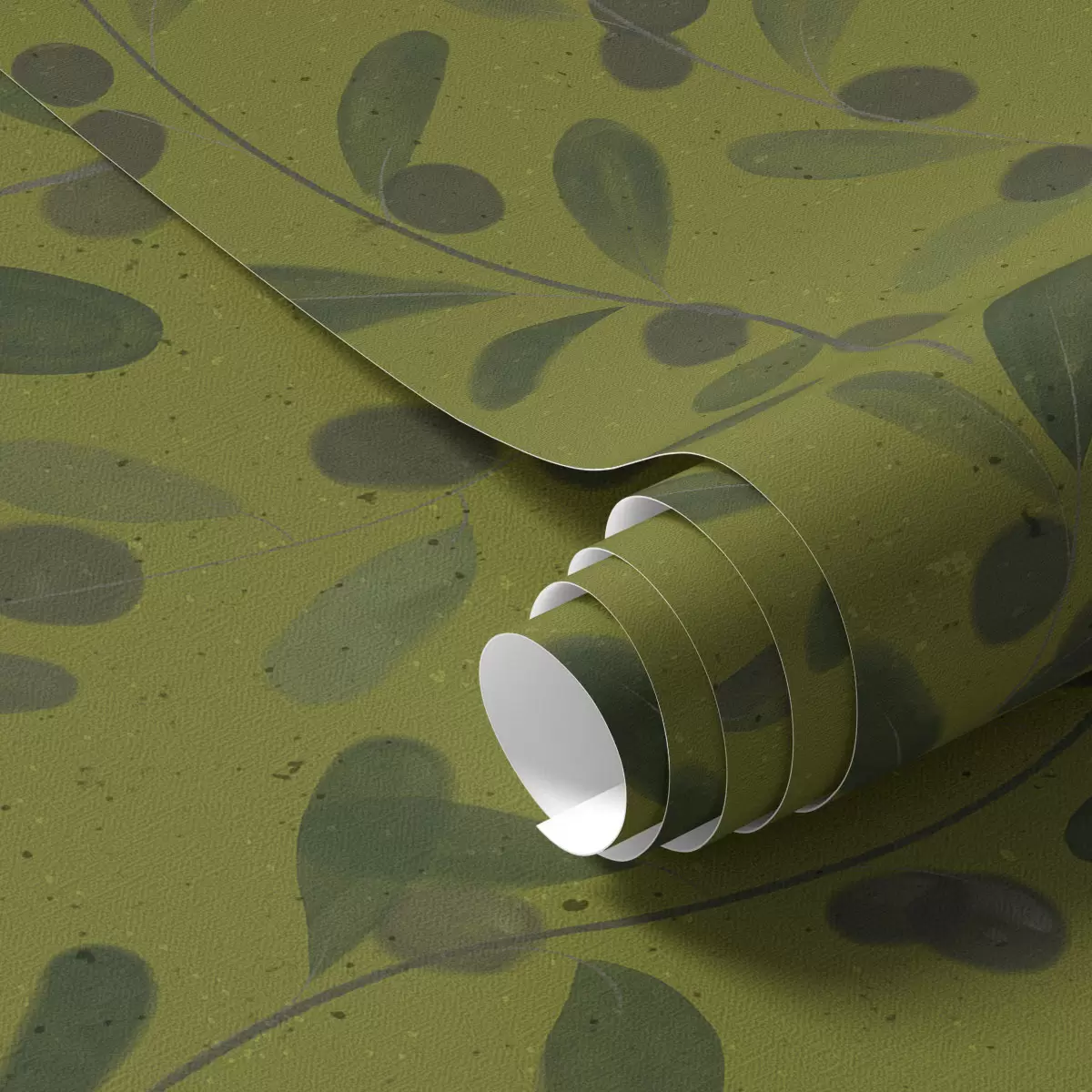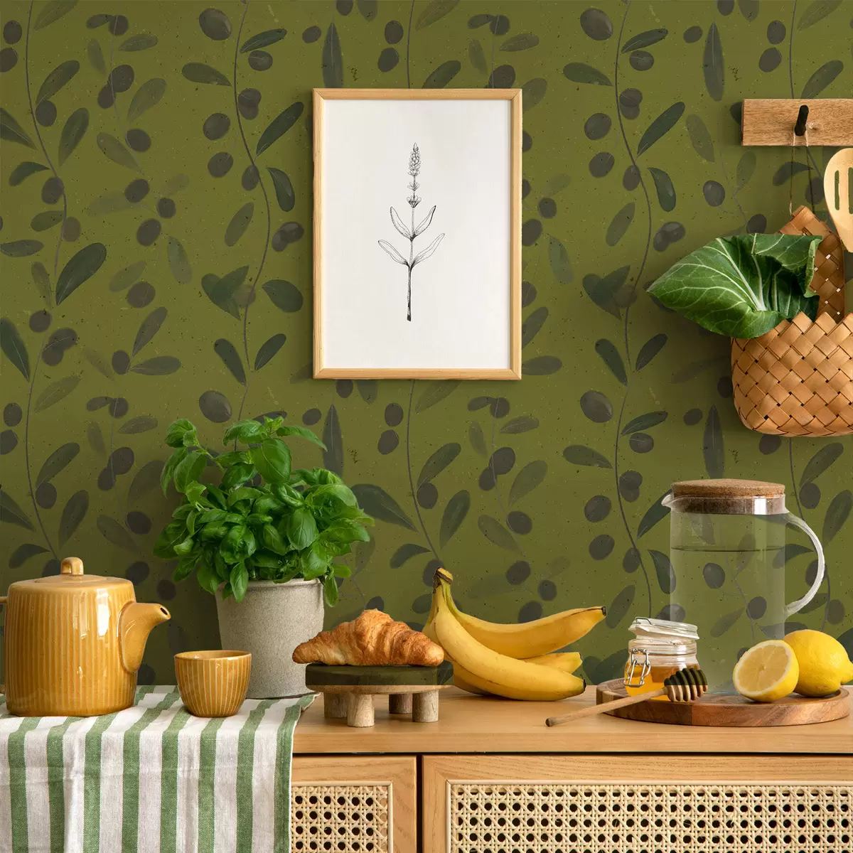 Tapeta Zelene veje z listi in jagodami na oljki Št. a01113